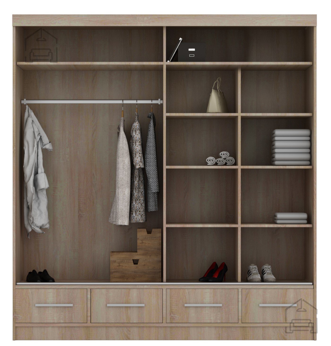 Eiche Sonoma: Eiche Sonoma ist eine natürliche Holzfarbe, die dem Schrank ein warmes und angenehmes Aussehen verleiht. Ein Schrank in Eichenfarbe schafft eine natürliche Atmosphäre im Raum und passt gut zu anderen Holzelementen im Innenraum.