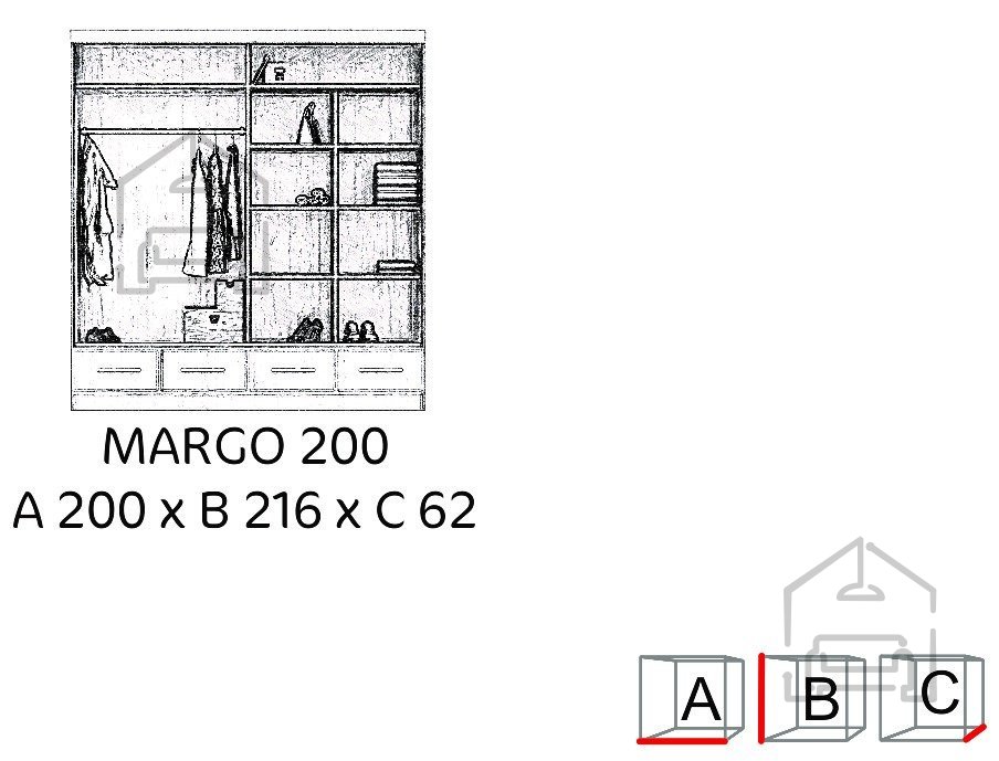 Der Kleiderschrank mit Schiebetüren Margo hat folgende Eigenschaften:
