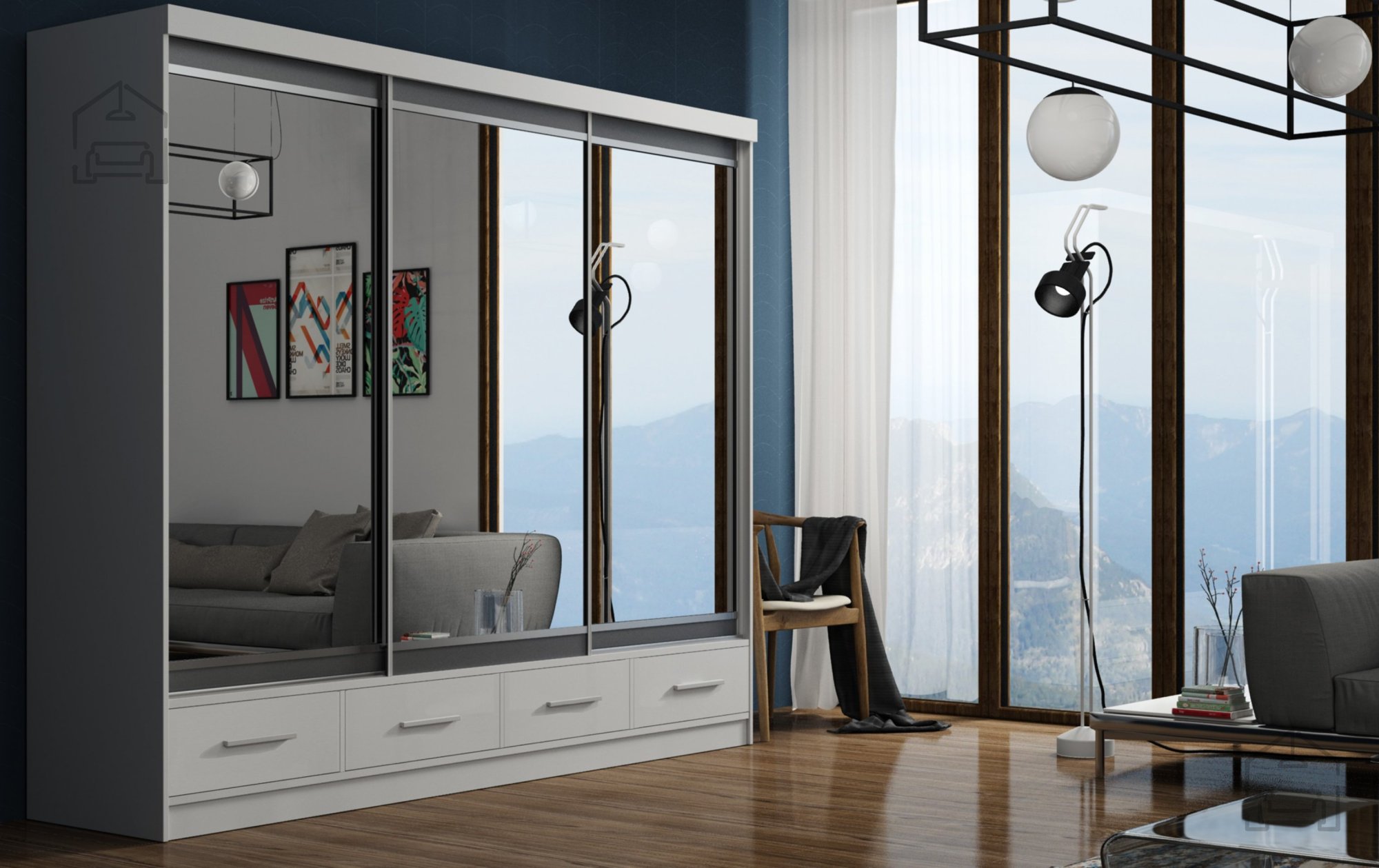 Der Kleiderschrank mit Schiebetüren Margo ist in drei Farben erhältlich: