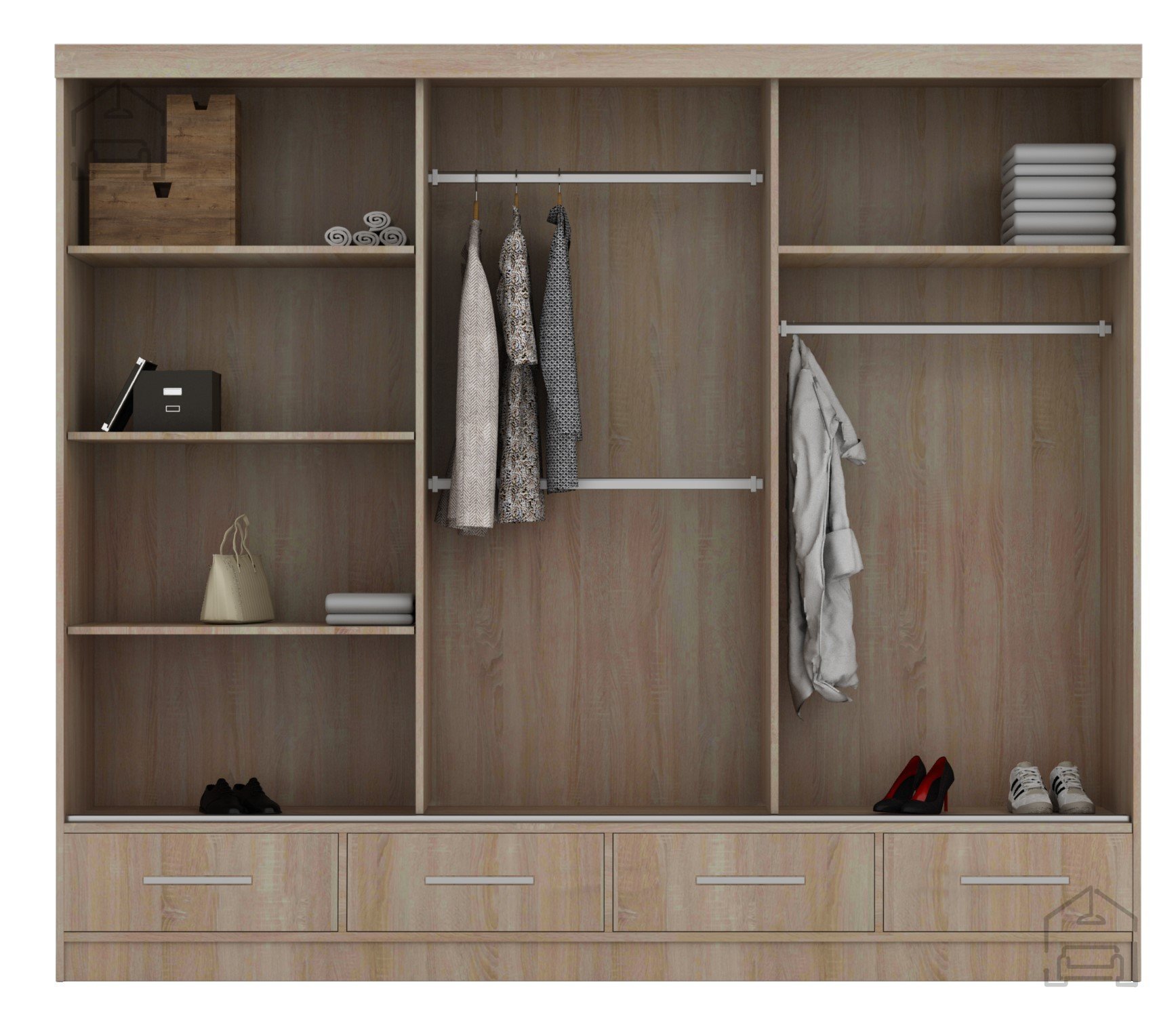 Der Kleiderschrank mit Schiebetüren Margo hat folgende Merkmale: