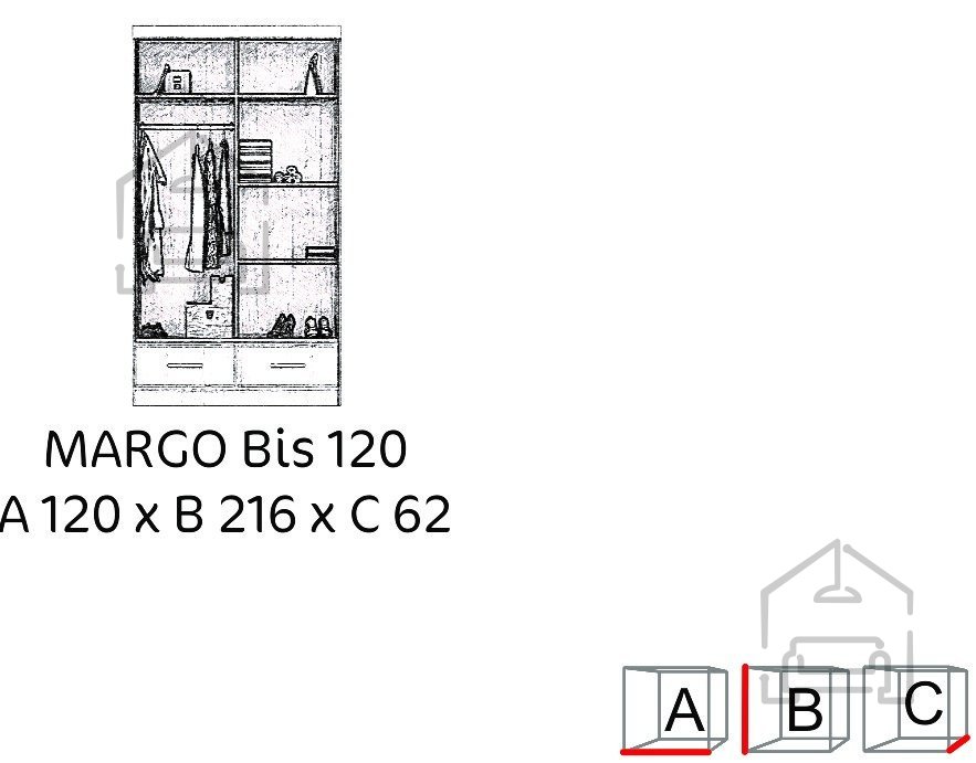 Der Schrank Margo Bis 120 zeichnet sich durch eine schlichte, aber elegante Form aus, die durch klare Linien und farbliche Harmonie ergänzt wird. Sie können zwischen drei Farbvarianten wählen – klassischem Weiß, modernem Schwarz oder warmer Sonoma-Eiche, die jedem Raum einen anderen Charakter verleiht. Unabhängig von der gewählten Korpusfarbe sind die Türfronten stets in einer Kombination aus grauen Flächen und Spiegel gestaltet. Diese Kombination vergrößert den Raum optisch und verleiht zusätzlich ein Gefühl von Helligkeit und Geräumigkeit, was besonders in kleineren Schlafzimmern oder Dielen wichtig ist.