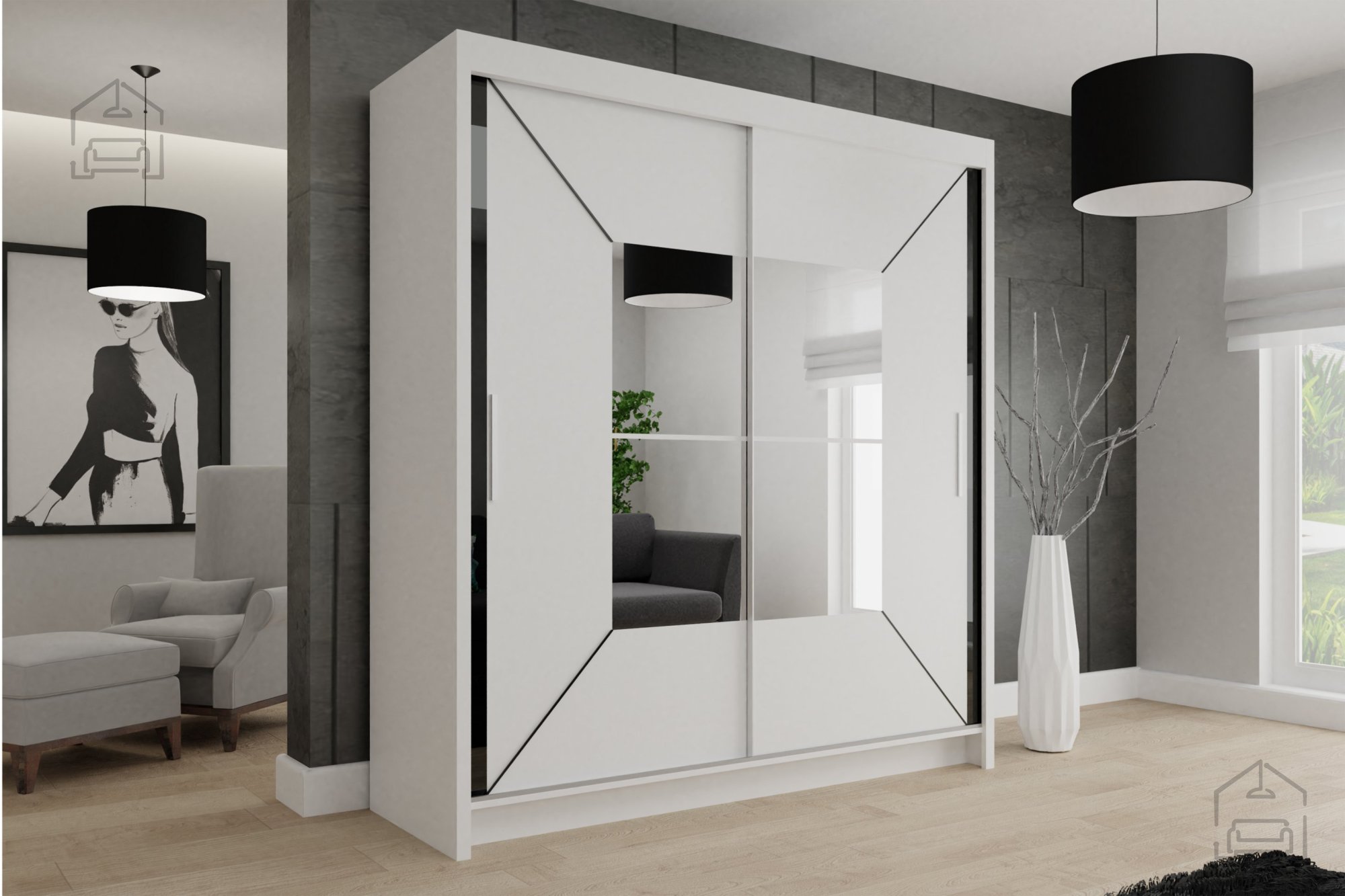 Spiegel und Glaseinsätze: Auf der Vorderseite des Schranks befinden sich wunderschöne Spiegel, die Ihrem Raum Großzügigkeit und Helligkeit verleihen. Zusätzlich gibt es Einsätze aus Lacobel-Glas, die dem Schrank ein modernes und elegantes Aussehen verleihen.