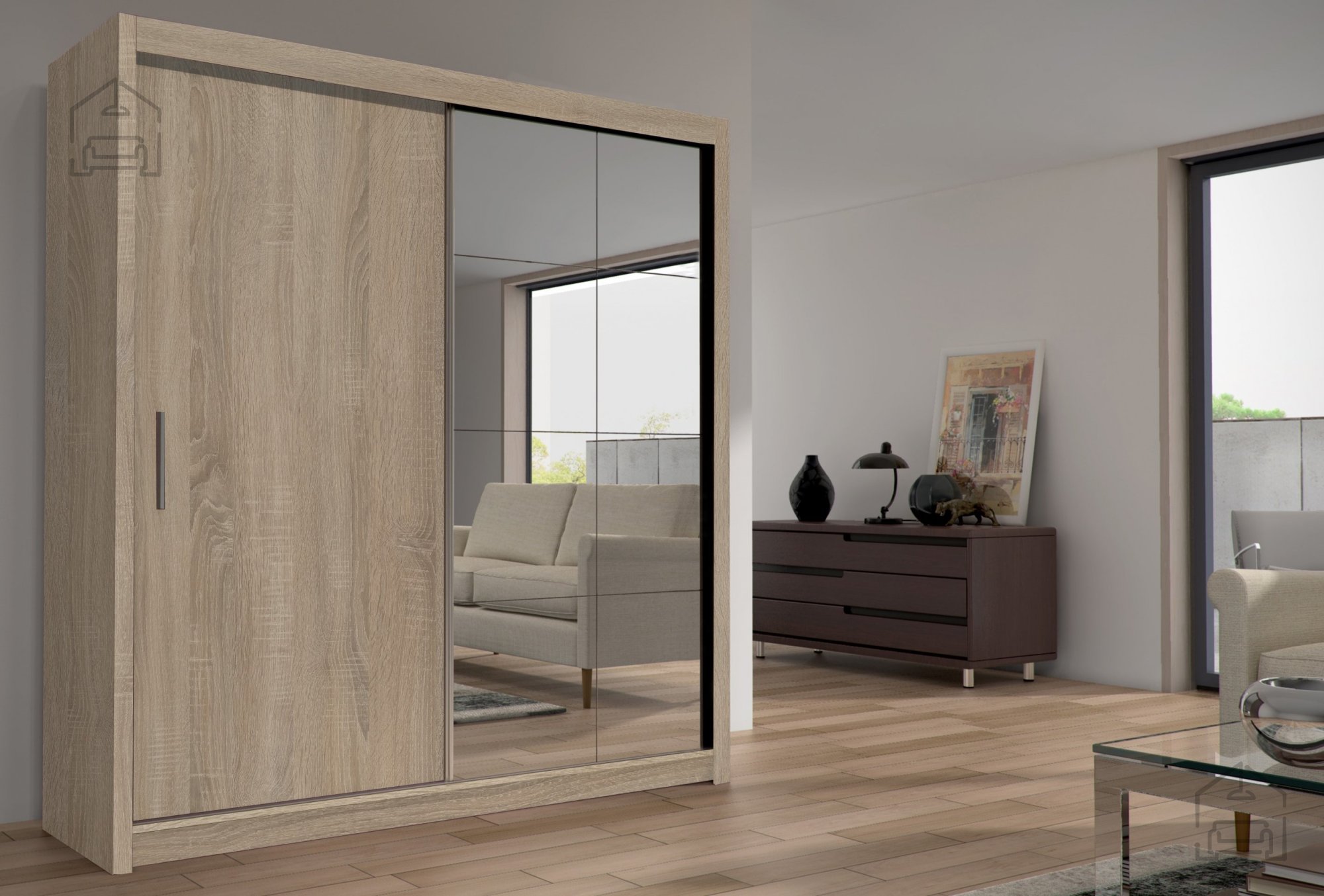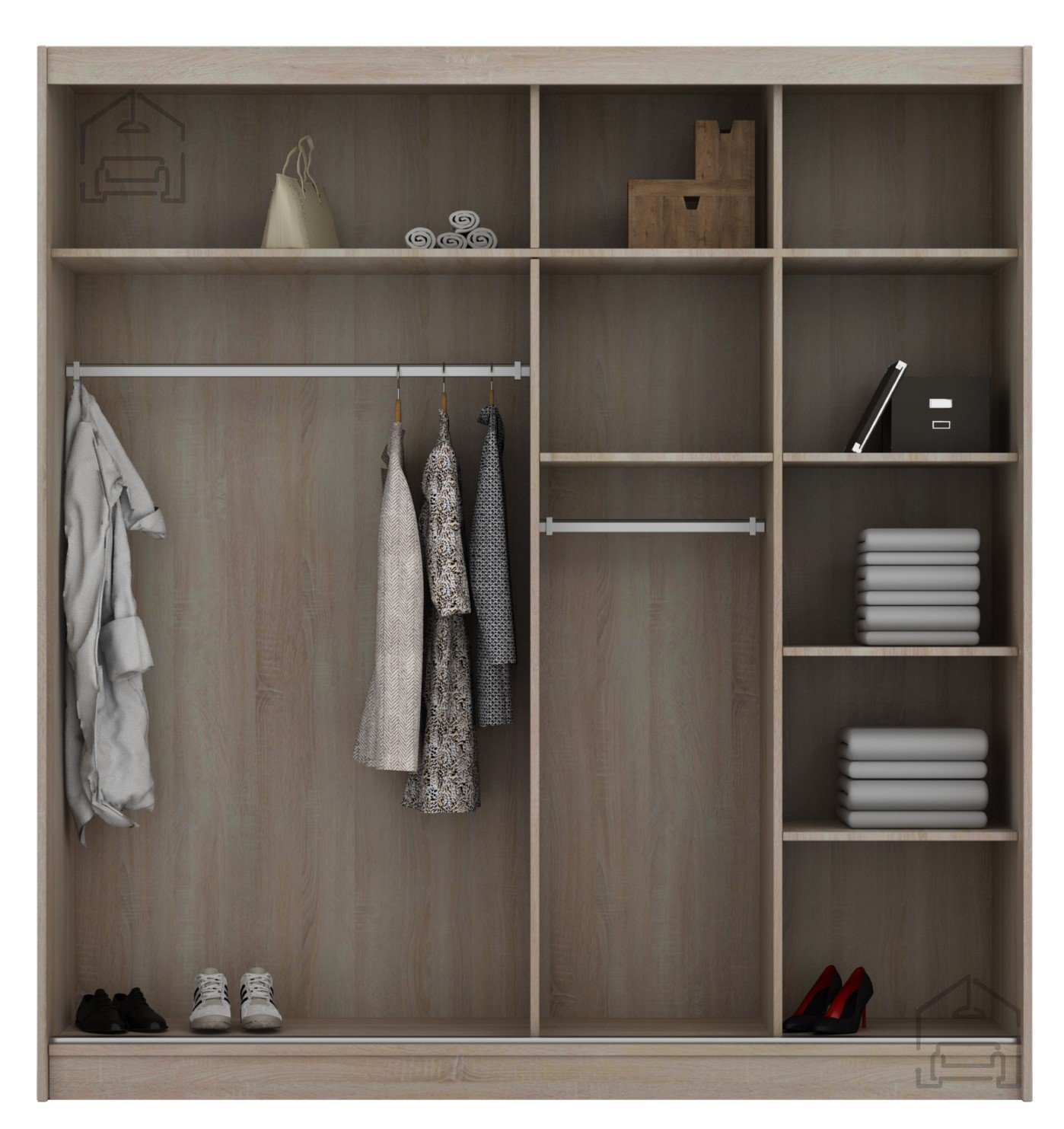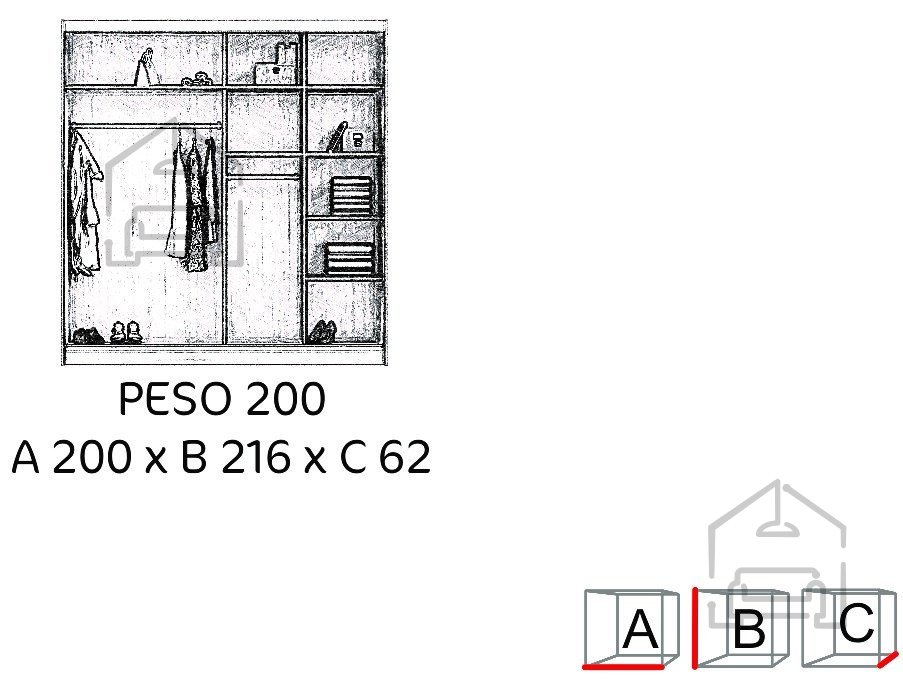Der Kleiderschrank Peso 200 ist ein funktionales Möbelstück, das Praktikabilität und modernes Design vereint, um das Ordnen und den Zugang zu Ihrer Kleidung zu erleichtern.