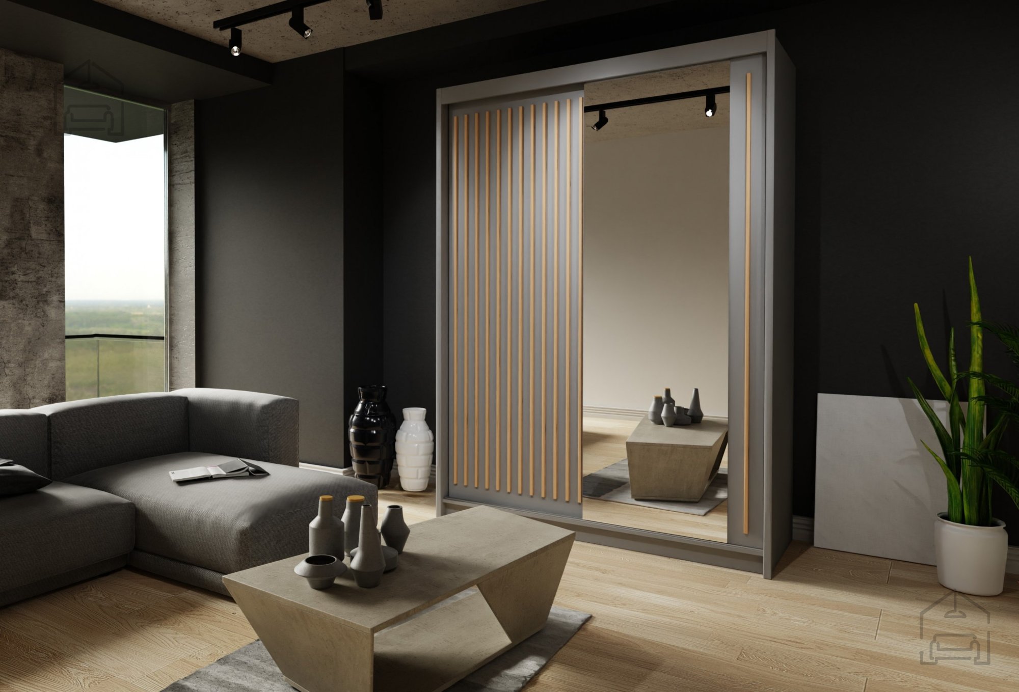 Spiegel: Der Schrank ist mit einem Spiegel ausgestattet, der den Raum nicht nur optisch vergrößert, sondern auch als praktisches Element zur Vorbereitung dient.