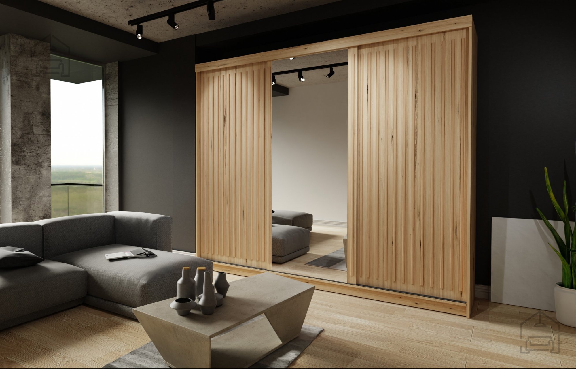 Spiegel: Der Schrank ist mit einem Spiegel ausgestattet, der nicht nur den Raum optisch vergrößert, sondern auch als praktisches Element zur Vorbereitung dient.