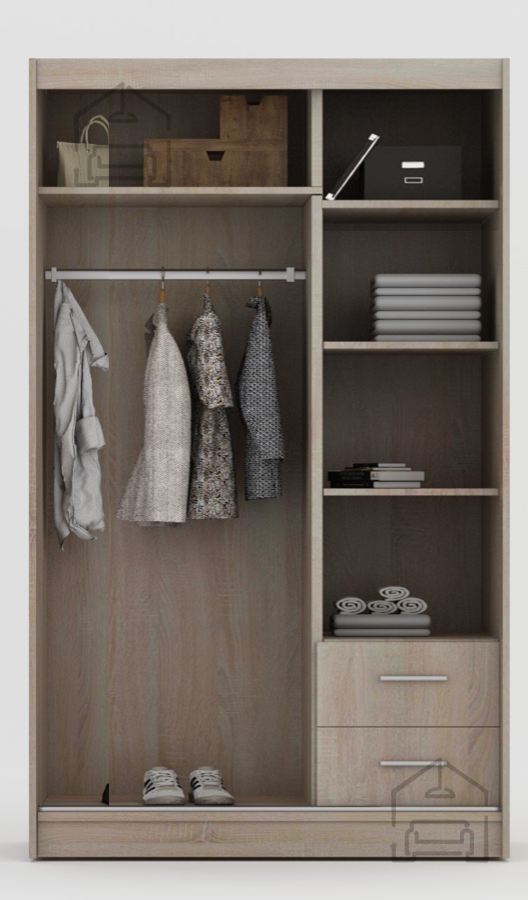Schiebetüren und Spiegel: Der Schrank ist mit einem sehr stabilen Schiebetürsystem ausgestattet, das ein reibungsloses Bewegen ermöglicht. Der Spiegel ist mit dekorativen Elementen verziert, die zu seinem attraktiven Erscheinungsbild beitragen.
