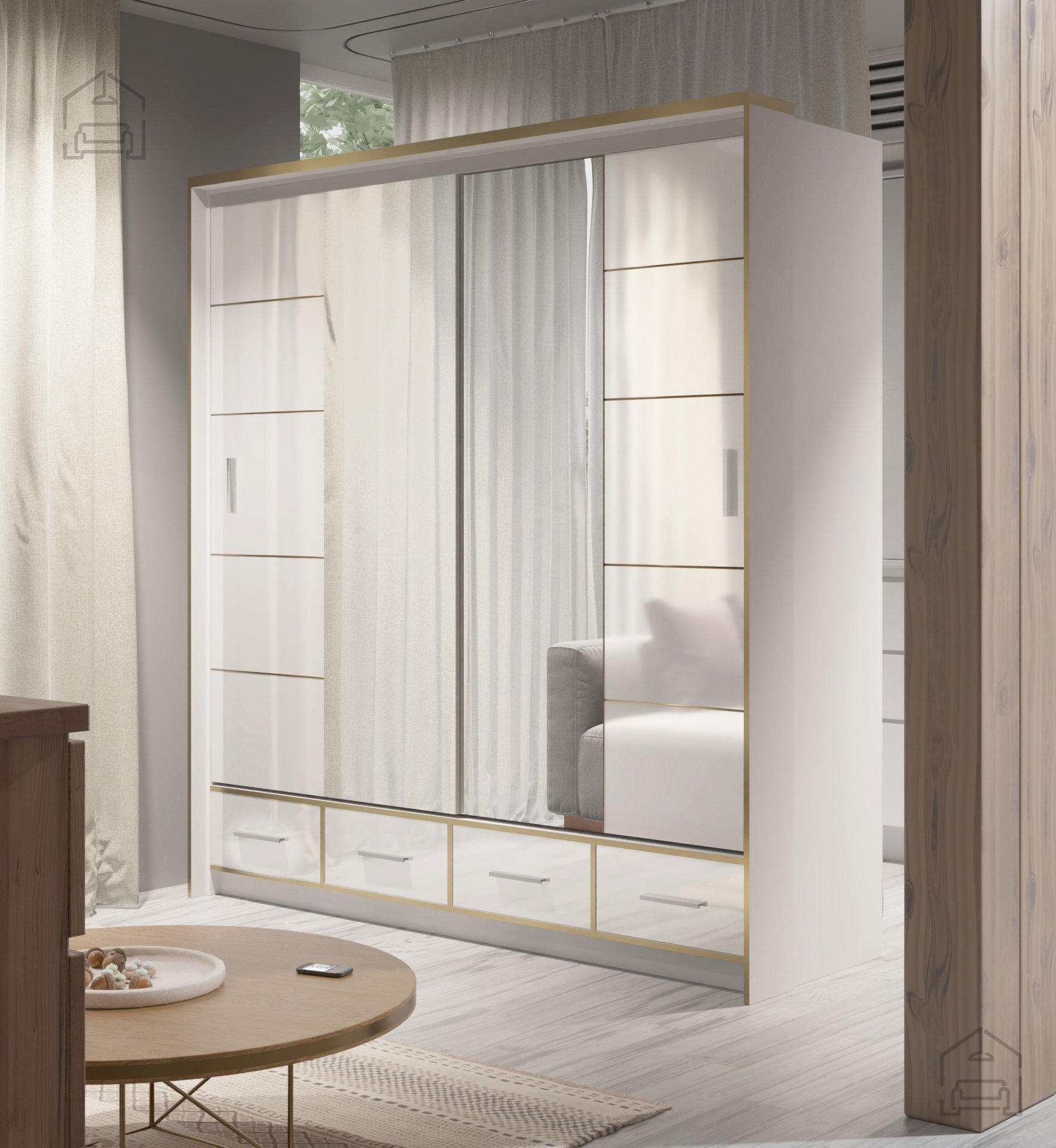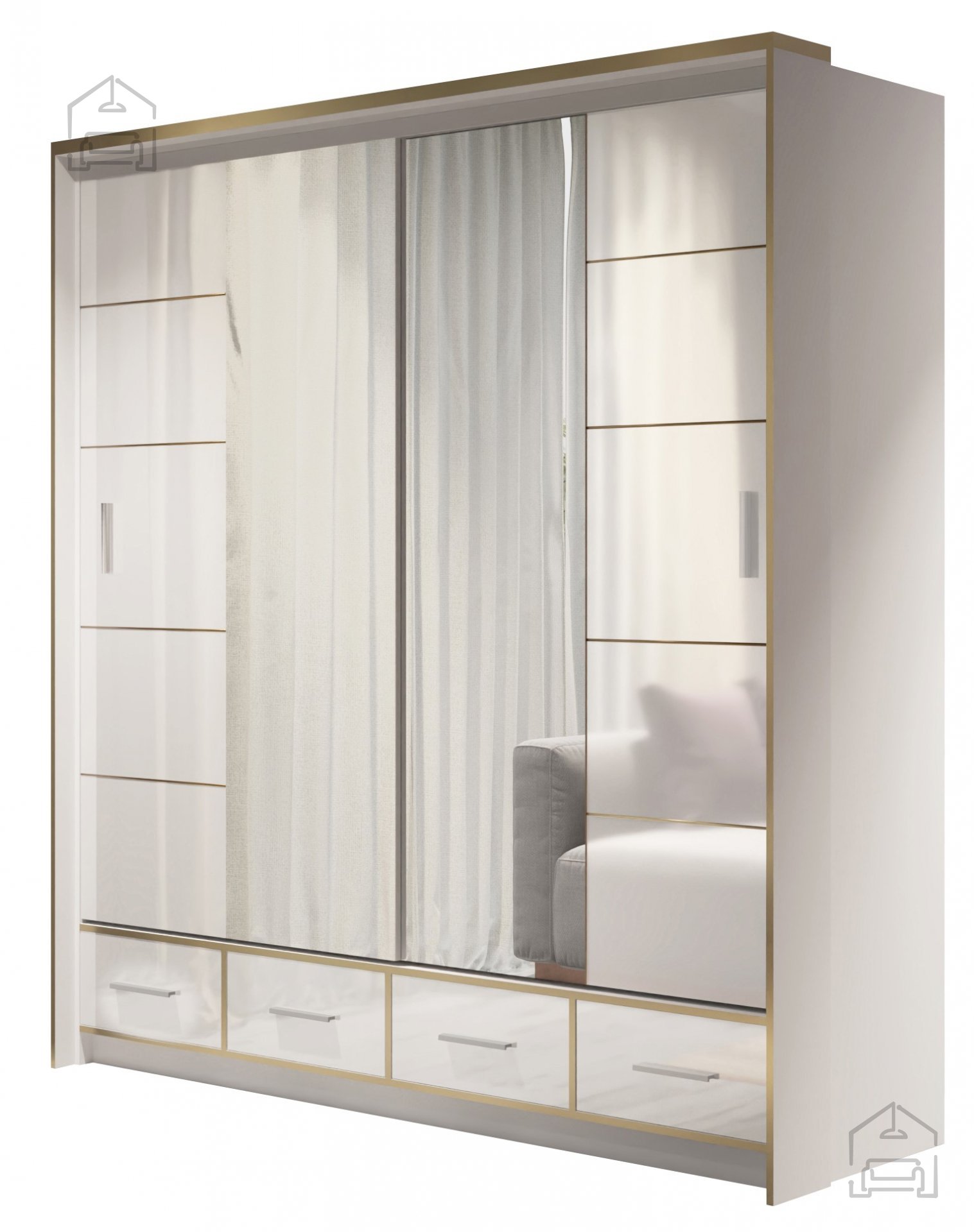 Der Kleiderschrank mit Schiebetüren Sevilla LED stellt eine Kombination aus außergewöhnlichem Design und Funktionalität dar. Dieser Schrank wird Liebhaber der Ästhetik ansprechen und zugleich eine praktische Aufbewahrung Ihrer Garderobe gewährleisten.