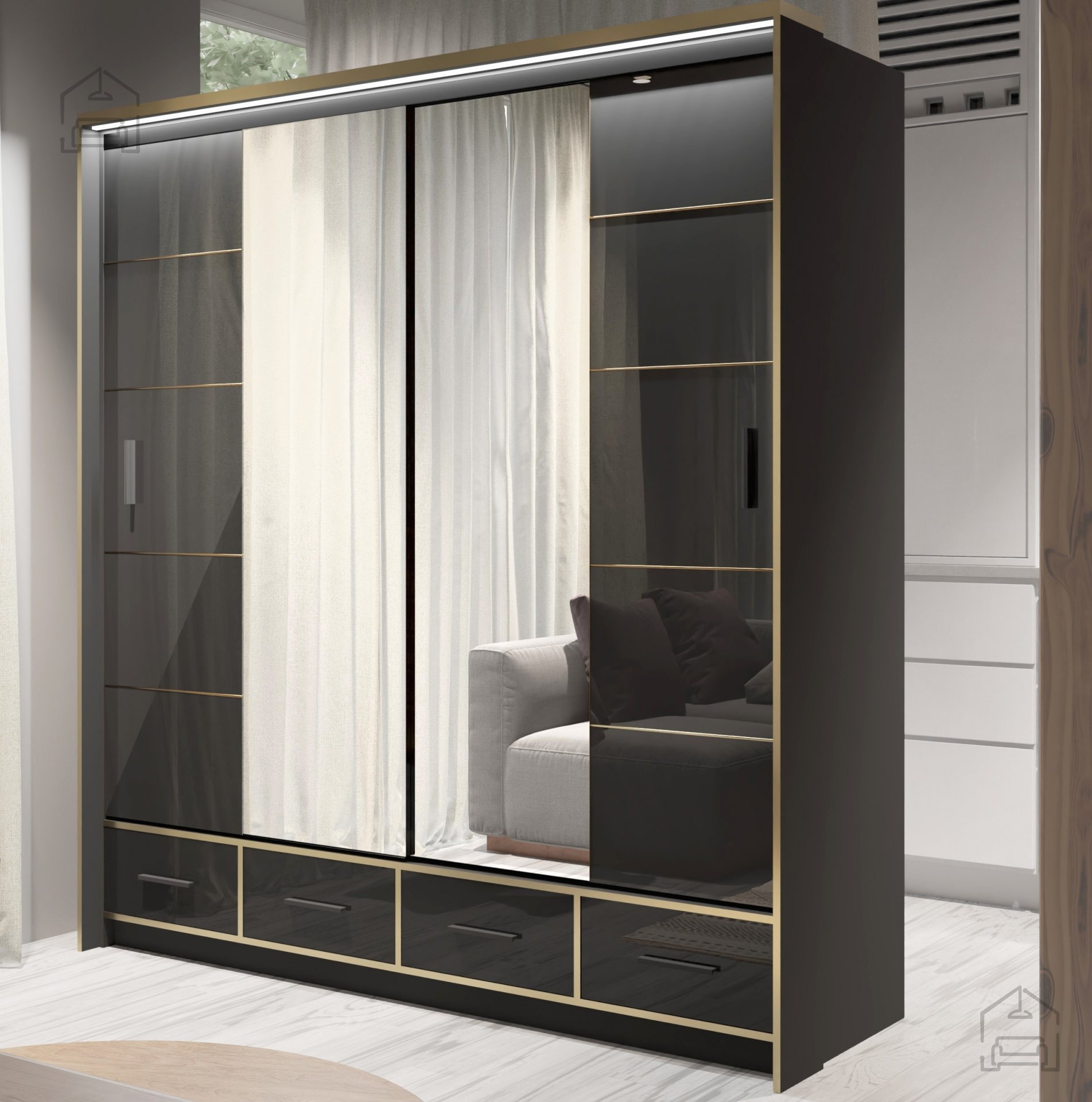 Kleiderschrank mit Schiebetüren Sevilla LED 200 - schwarz