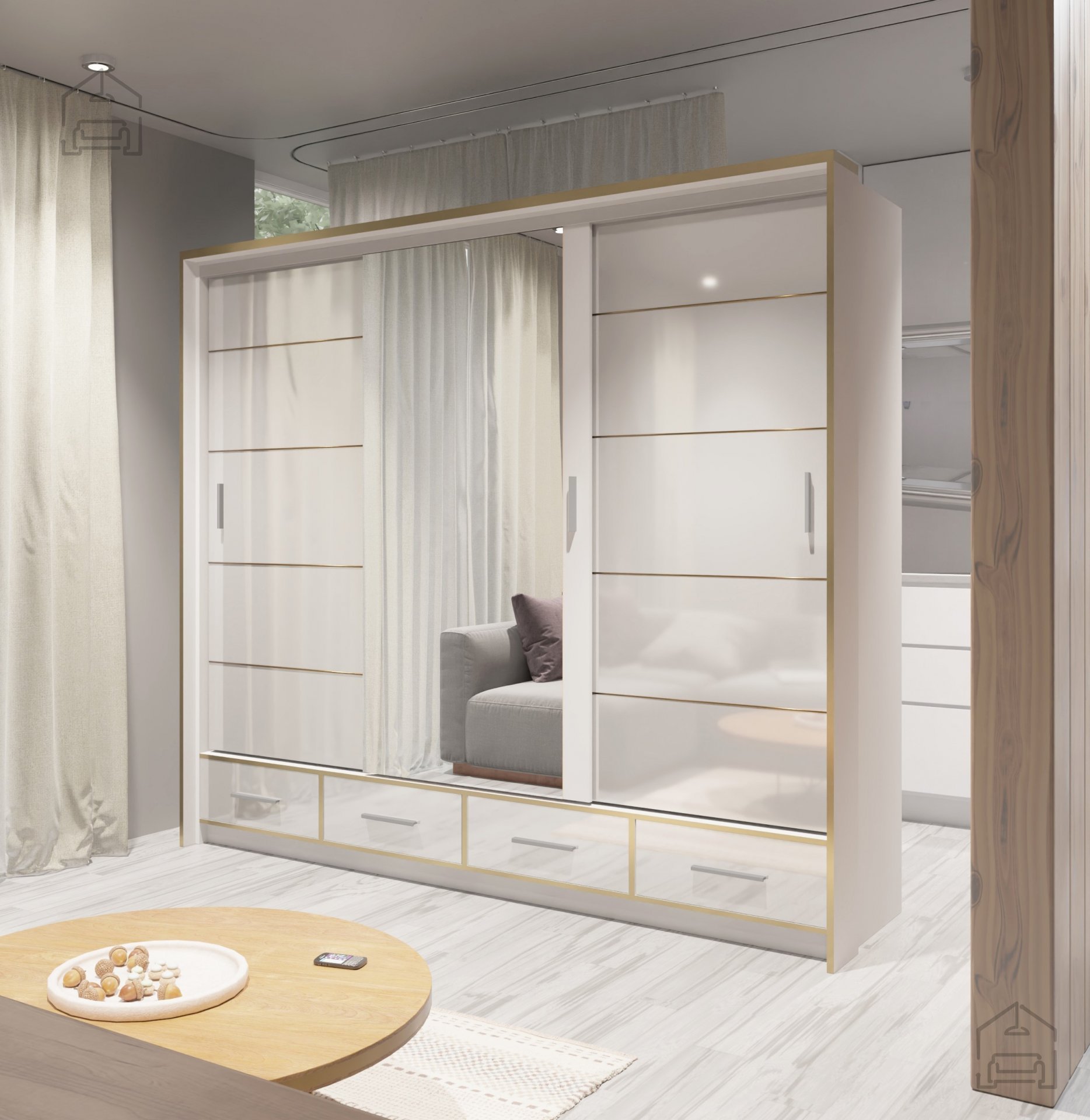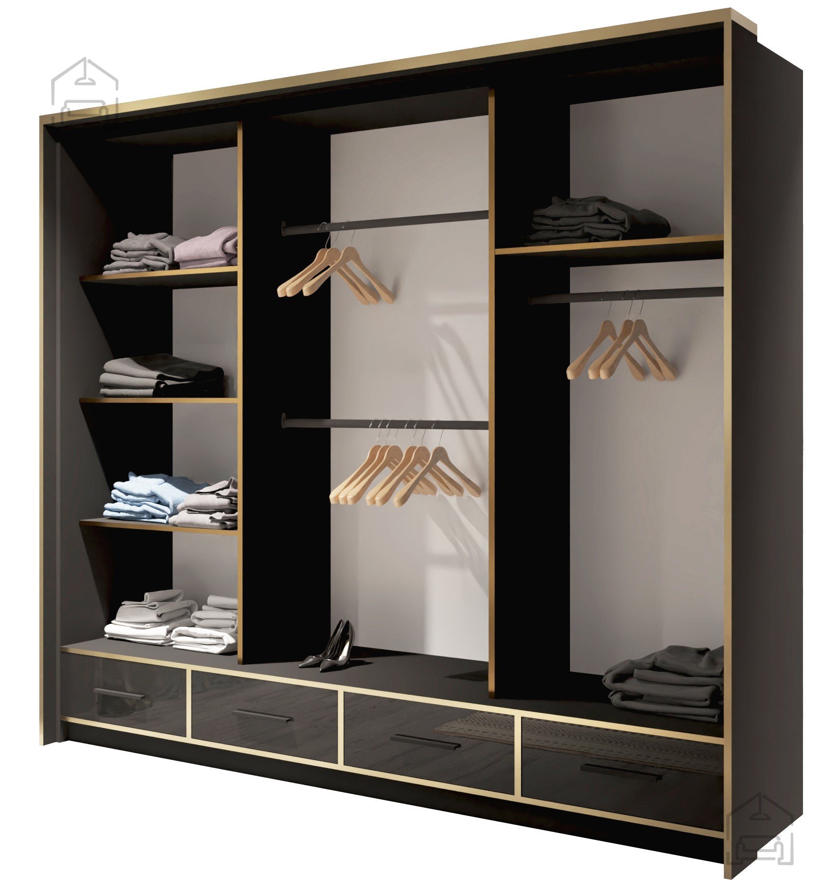 • Der Schrank ist mit Schiebetüren ausgestattet, die einen einfachen Zugang zum Inneren des Schranks ermöglichen und gleichzeitig Platz im Raum sparen.
