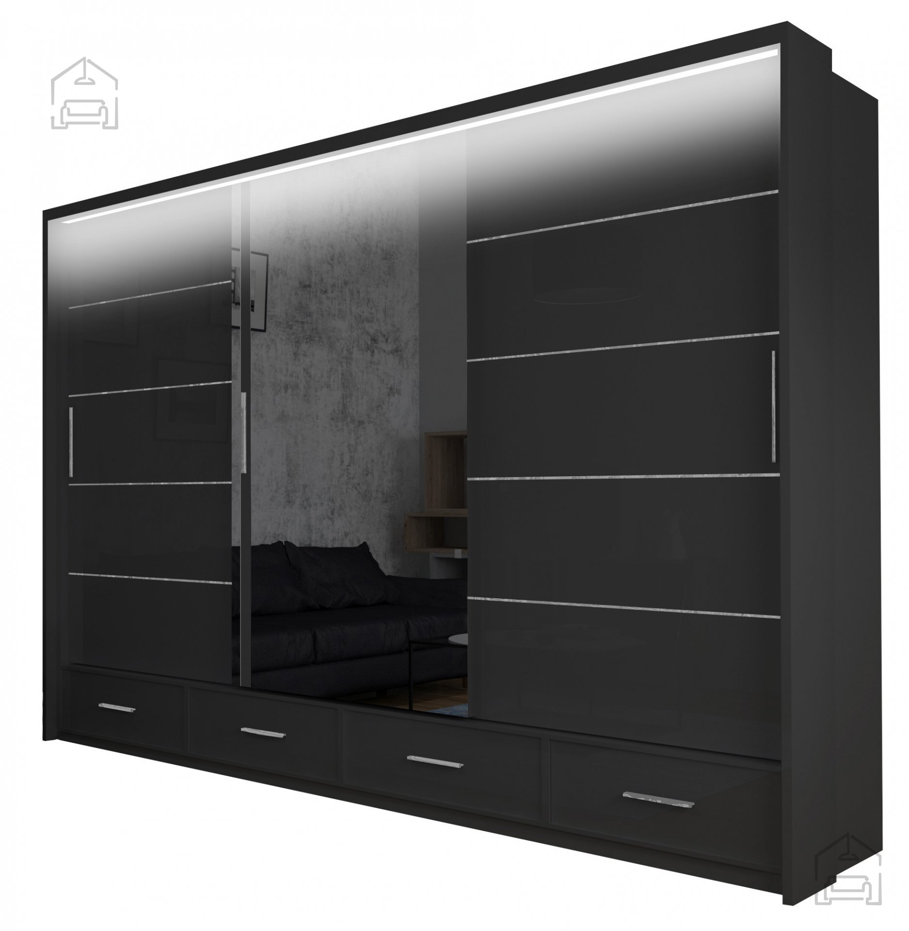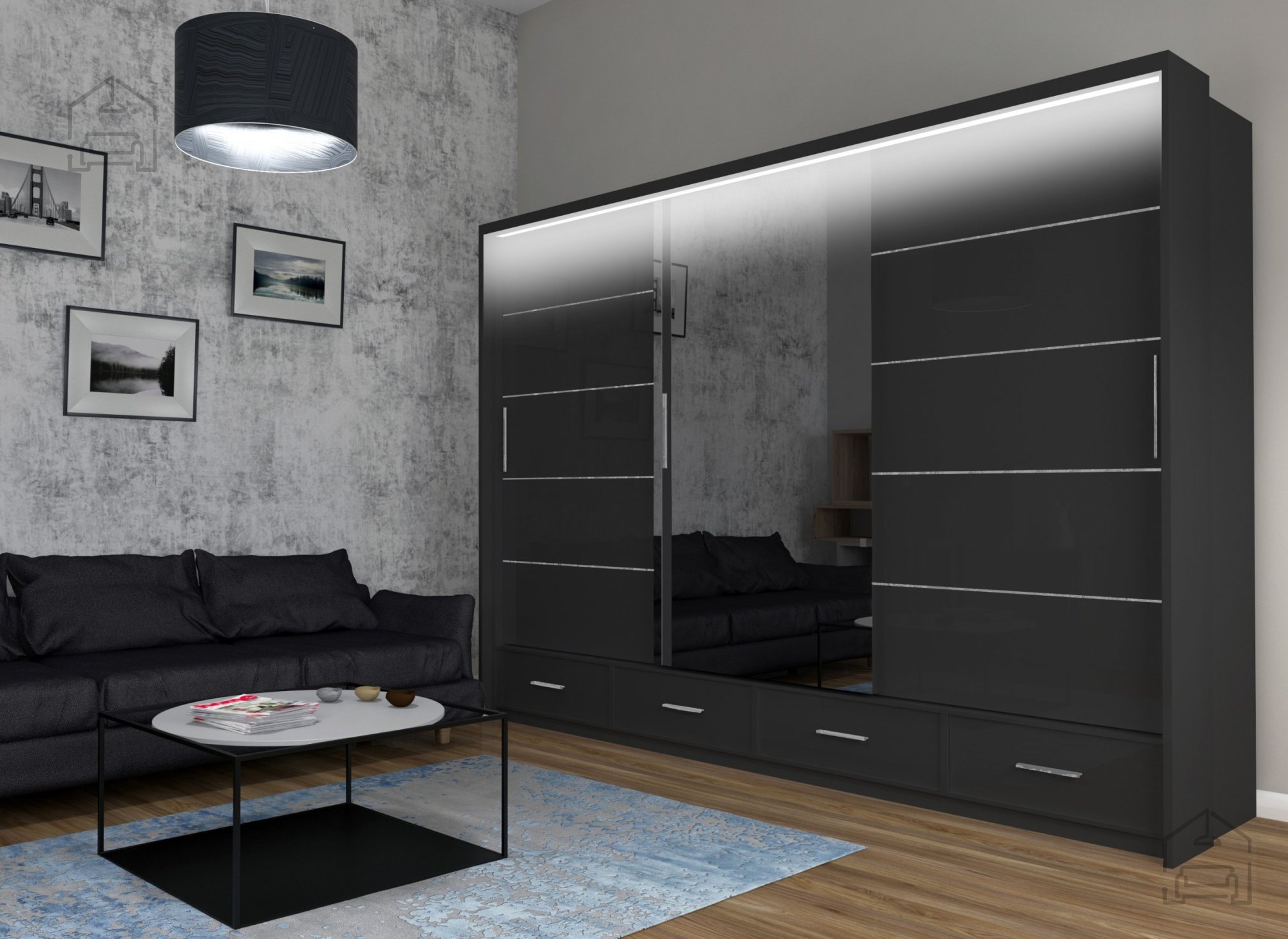 Der Kleiderschrank mit Schiebetüren Sycylia LED 250 ist ein attraktives und funktionales Möbelstück, das Ihr Schlafzimmer oder einen anderen Raum hervorragend ergänzen kann.