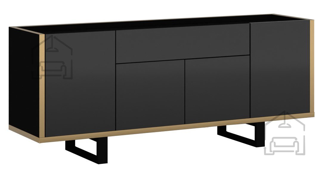 Das TV-Sideboard Henry stellt eine elegante und moderne Lösung für Ihr Wohnzimmer dar, da es mit mehreren funktionalen Elementen ausgestattet ist. Dieses Sideboard ist aus einer massiven Platte gefertigt, die in schwarzem Hochglanz laminiert ist, was ihm ein äußerst ansprechendes Aussehen verleiht. Hier sind einige der wichtigsten Merkmale des TV-Sideboards: