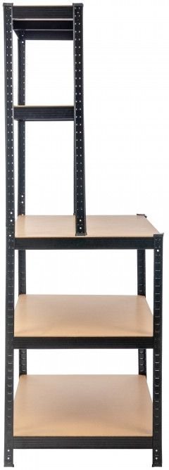 Das Lagerregal mit Verlängerung ist eine zuverlässige Lösung für die organisierte Aufbewahrung in der Garage, Werkstatt, im Keller oder in anderen Nebenräumen. Das Design aus verzinktem Stahl gewährleistet hohe Festigkeit, Korrosionsbeständigkeit und eine lange Lebensdauer, während die MDF-Böden eine gleichmäßige Gewichtsverteilung der gelagerten Gegenstände ermöglichen. Die schwarze Farbe verleiht dem Regal ein modernes, aber neutrales Aussehen, das sich gut in verschiedene Umgebungen einfügt – von häuslichen Wirtschaftsräumen bis zu professionellen Werkstätten.