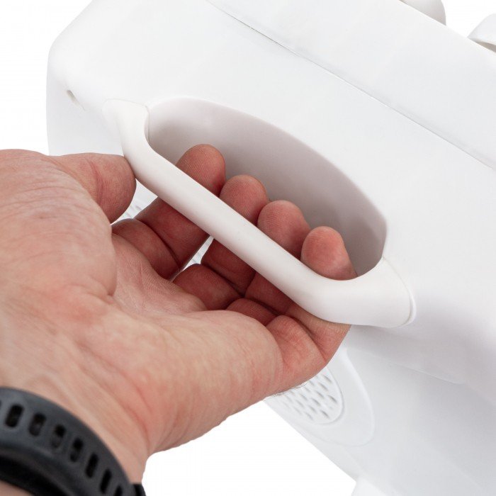 Der Mirpol HH-200A zeichnet sich durch einfache Bedienung und Zuverlässigkeit aus. Die kompakte Bauweise ermöglicht es, ihn schnell dorthin zu bringen, wo er gebraucht wird. Der eingebaute Transportgriff sorgt für sicheres Tragen, was besonders nützlich ist, wenn das Gerät in verschiedenen Räumen oder Bereichen verwendet wird. Zwei Leistungsstufen ermöglichen sparsames oder intensives Heizen – bei niedriger Leistung von 1000 W für sanftes Erwärmen kleinerer Flächen und bei höherer Leistung von 2000 W für schnelles Erreichen warmer Luft im Raum.