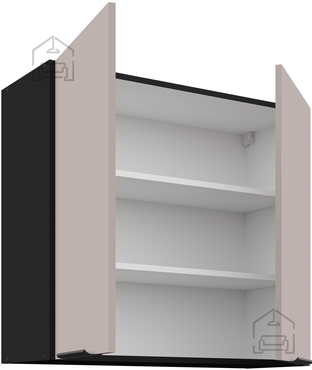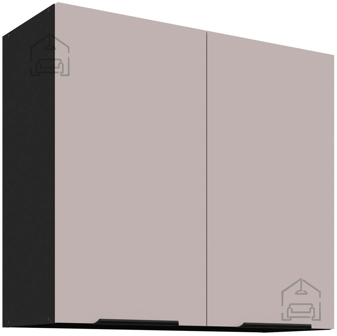Material: Laminierte Platte 16 mm Farbe: Kaschmir/Schwarz Griffe: Griff UA-HEXA, Schwarz/Aluminium Arbeitsplatte: 38-6499 Marmor Roma System zum leisen Schließen von Fronten und Schubladen