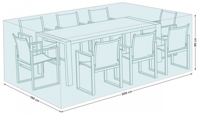 Die praktische Abdeckung für das Garten-Esszimmermöbel-Set vereint Funktionalität mit Ästhetik. Sie schützt die Möbel vor ungünstigen Witterungseinflüssen und übermäßiger Sonneneinstrahlung und erleichtert deren Aufbewahrung. So bleiben die gut geschützten Möbel länger haltbar. Die Abdeckung besteht aus wasserdichtem Oxford-Gewebe, das das Produkt wirksam schützt und eine angemessene Atmungsaktivität gewährleistet. Die Möbelabdeckung ist nicht nur ein solider Schutz, sondern auch praktisch für die Aufbewahrung – zusammengefaltet nimmt sie wenig Platz ein. Eine Tasche ist beigefügt, die einen einfachen Transport überallhin ermöglicht und die Abdeckung schützt, wenn sie nicht in Gebrauch ist.