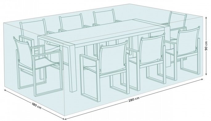 Die praktische Abdeckung für das Garten-Essmöbel-Set vereint Funktionalität mit Ästhetik. Sie schützt die Möbel wirksam vor ungünstigen Witterungseinflüssen und übermäßiger Sonneneinstrahlung und erleichtert deren Aufbewahrung. Mit dem richtigen Schutz werden die Möbel viel länger halten. Die Abdeckung besteht aus wasserdichtem Oxford-Gewebe, das das Produkt effektiv schützt und eine angemessene Atmungsaktivität gewährleistet. Die Möbelabdeckung ist nicht nur ein solider Schutz, sondern auch praktisch zur Aufbewahrung – zusammengefaltet nimmt sie wenig Platz ein. Eine Tasche ist beigefügt, die ein einfaches Tragen überallhin ermöglicht und die Abdeckung schützt, wenn sie nicht in Gebrauch ist.