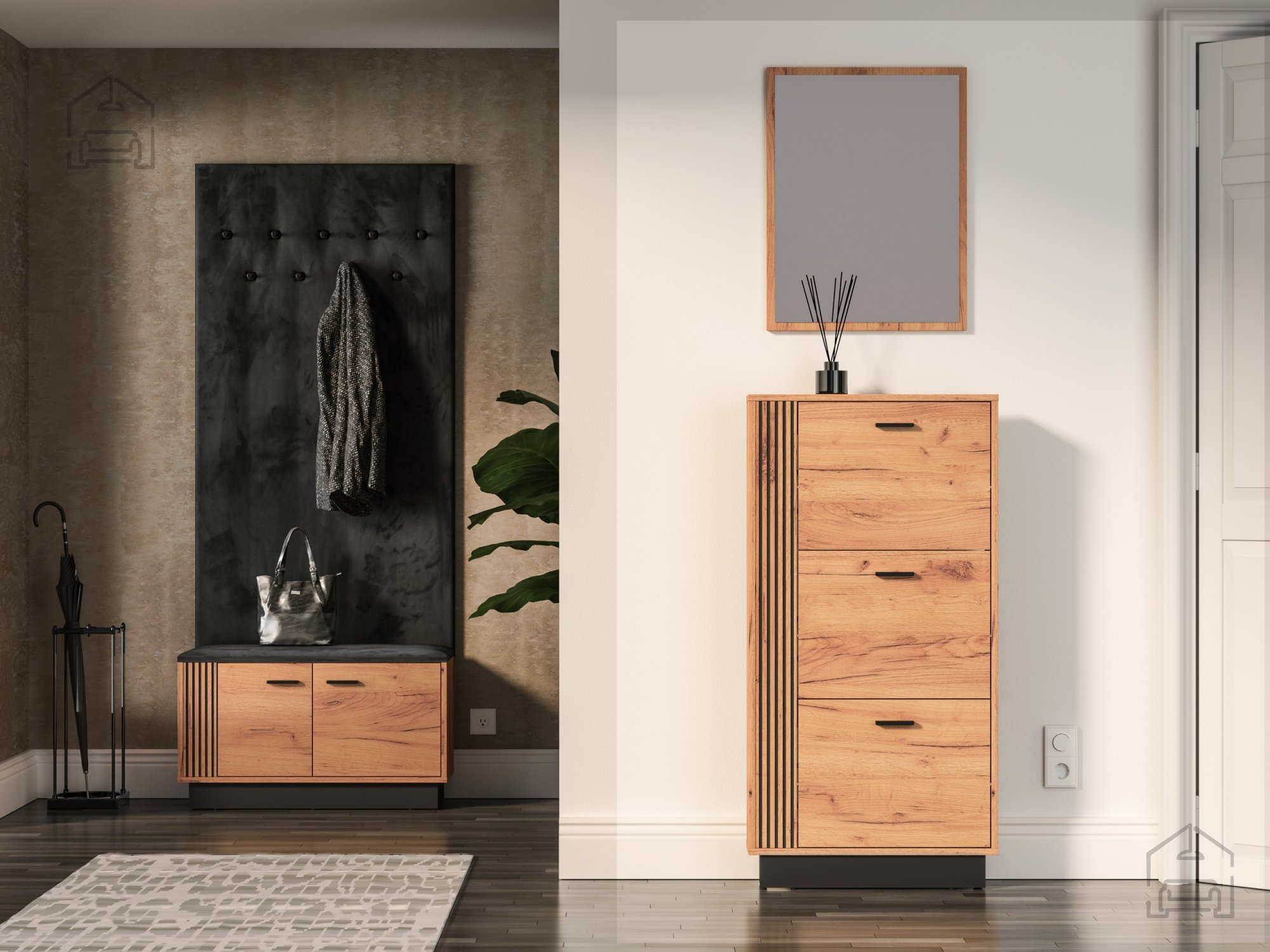 Mirjana (23.05.2024) : Der Schrank hat sich wunderbar in den Raum eingefügt, ich habe ihn selbst zusammengebaut. Er nimmt nicht viel Platz ein und ist auch zum Sitzen angenehm.