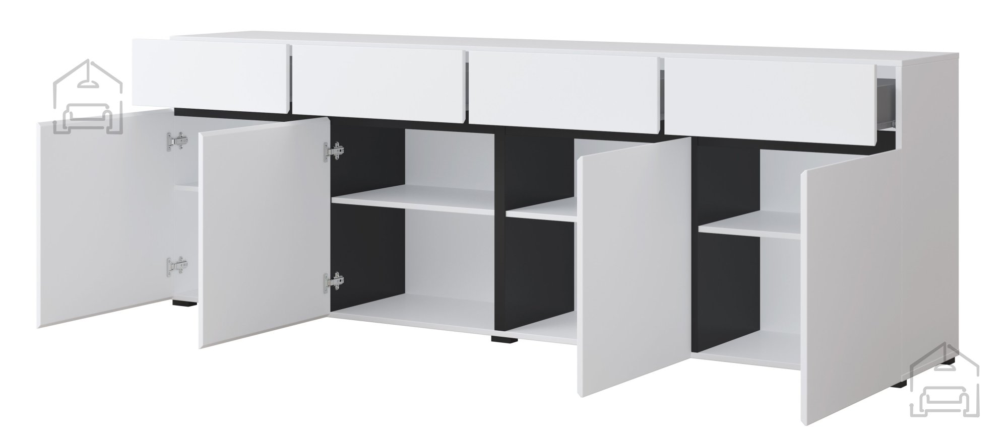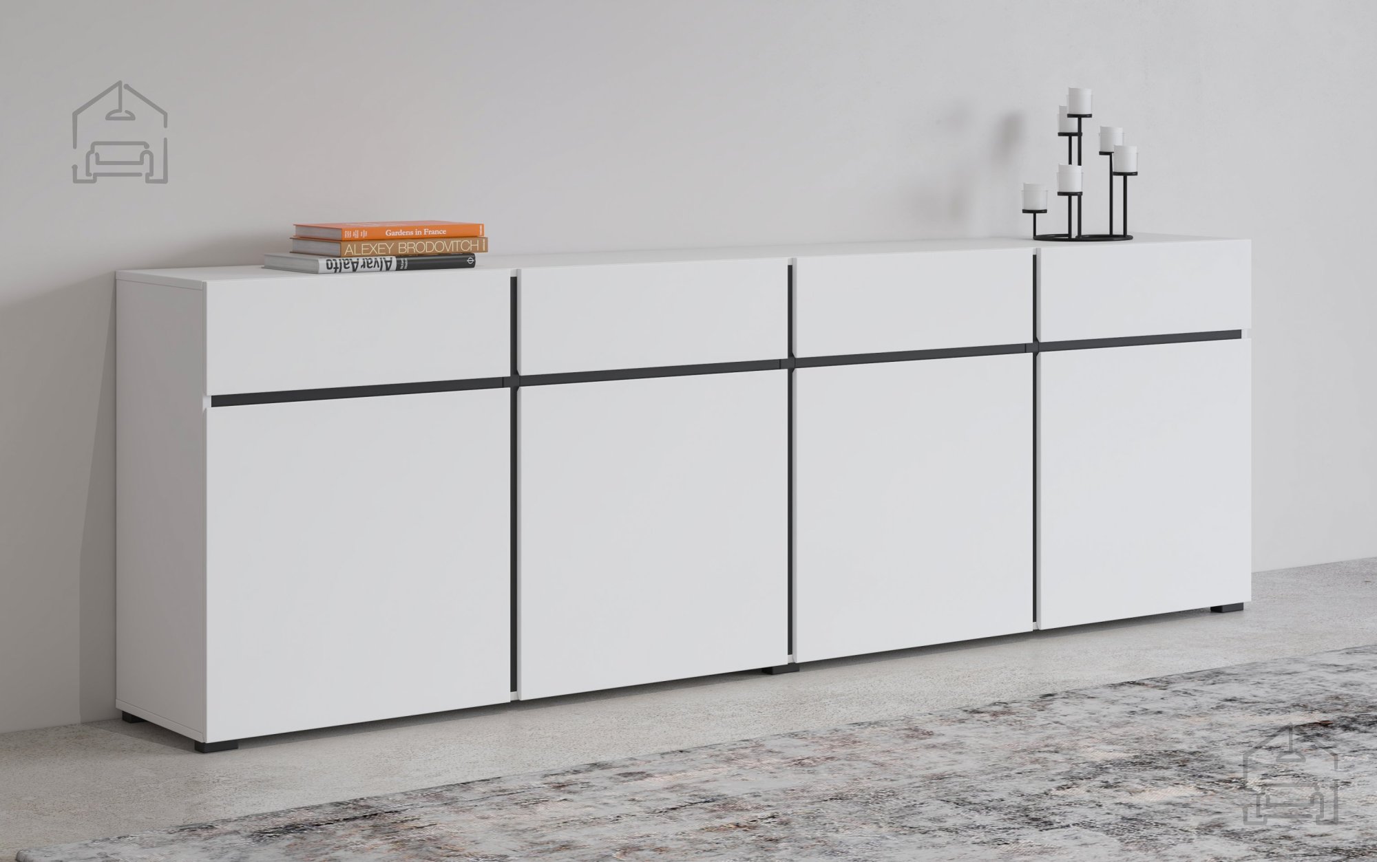 In der Welt der Inneneinrichtung, wo Funktionalität auf Design trifft, sticht die Kommode Cross - Weiß/Weiß-Schwarz - 249WMY25 als zeitloses Möbelstück hervor, das Eleganz und Praktikabilität vereint. Mit den Maßen 225x40x78 cm bietet dieses Produkt ausreichend Stauraum und verleiht Ihrem Wohnraum gleichzeitig einen eleganten Touch. Hergestellt aus hochwertigem MDF-Material, verspricht die Kommode eine lange Lebensdauer und Beständigkeit.