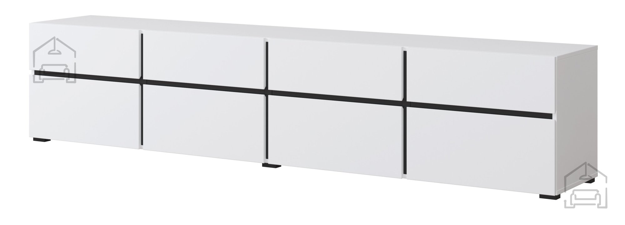 Unsere TV Kommode Cross ist aus hochwertigem MDF-Material gefertigt, das für seine Strapazierfähigkeit und Widerstandsfähigkeit gegen Beschädigungen bekannt ist. Dies gewährleistet eine lange Lebensdauer des Produkts und bewahrt gleichzeitig sein elegantes Aussehen. Die Maße 225x40x48 cm ermöglichen es, die Kommode perfekt in Ihren Raum zu integrieren – egal, ob Sie ein großzügiges Wohnzimmer oder begrenzten Platz haben.