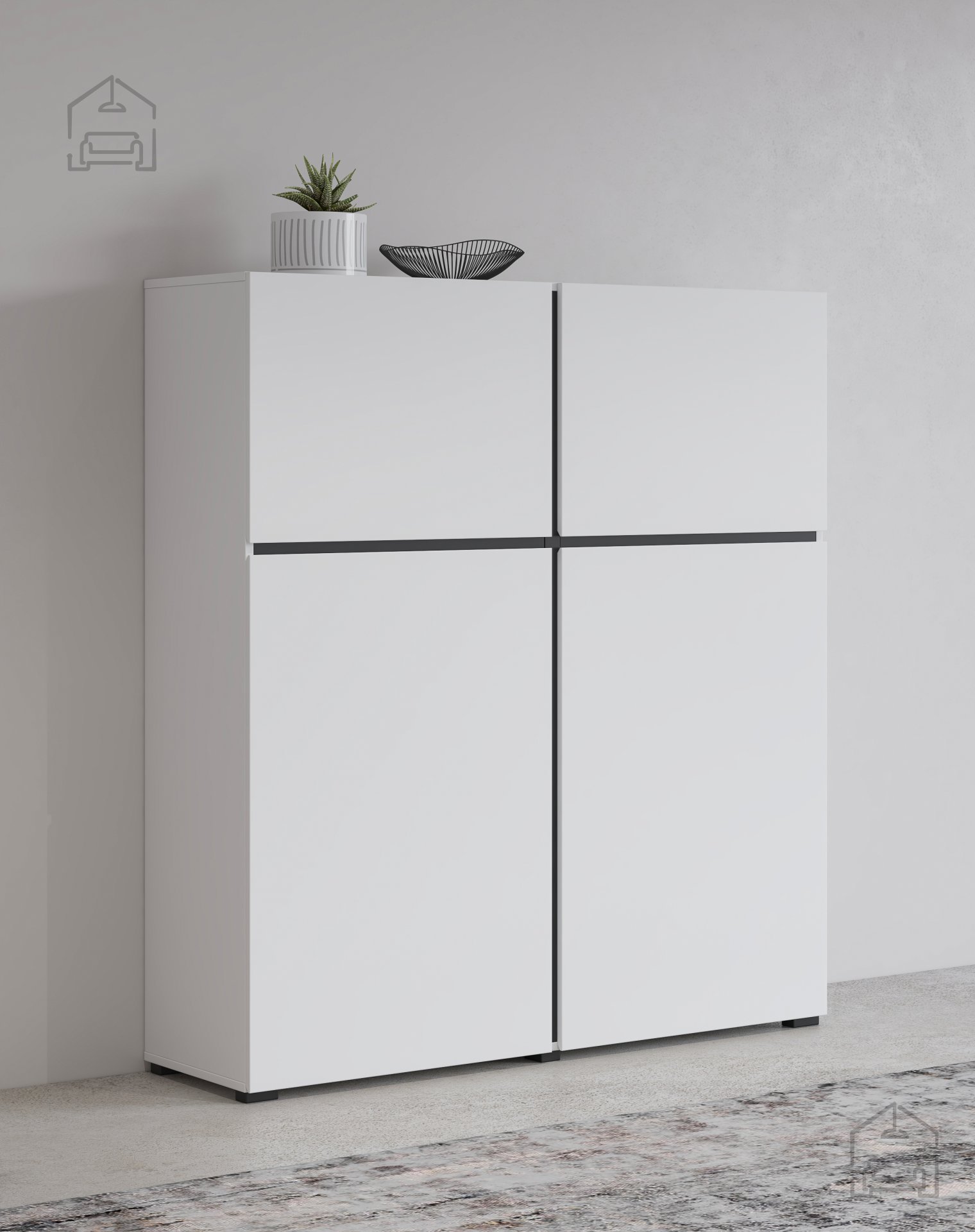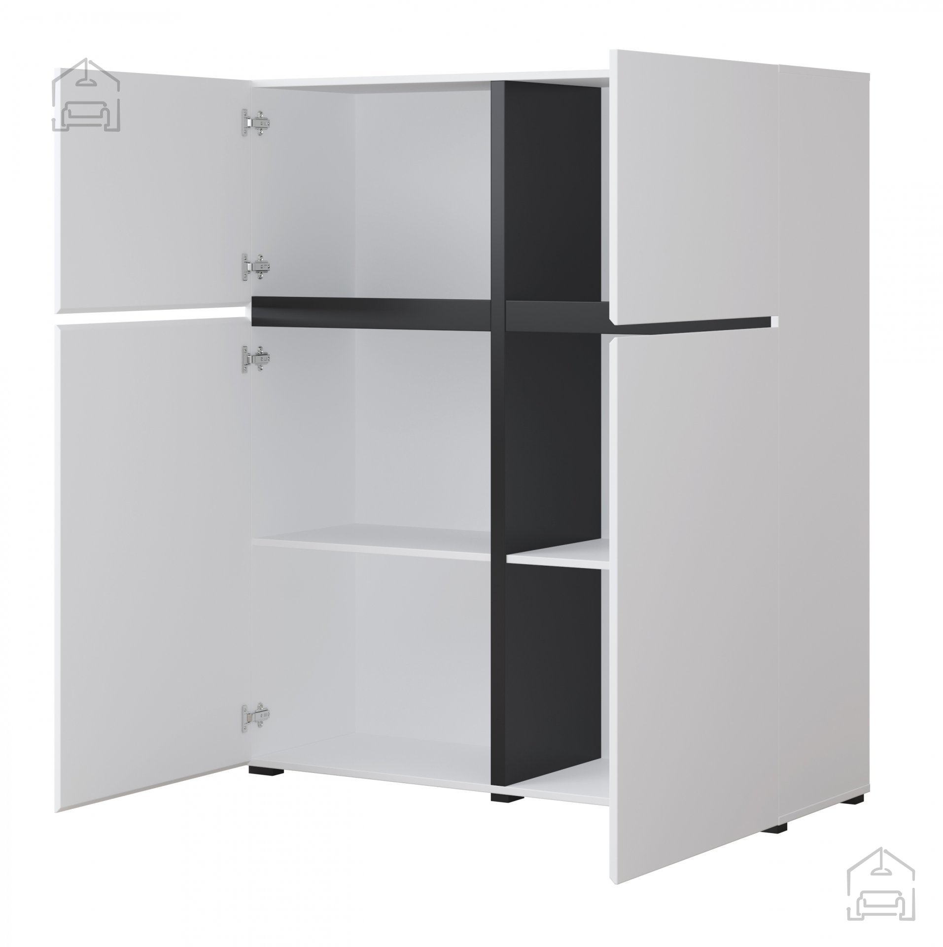 Wir präsentieren Ihnen die Kommode Cross - weiß/weiß-schwarz - 249WMY76, bei der sich Ästhetik mit Funktionalität verbindet, um Ihrem Zuhause einen Hauch moderner Eleganz zu verleihen. Diese außergewöhnliche Kommode, gefertigt aus hochwertigem MDF-Material, wird sorgfältig entworfen und in der renommierten Fabrik Helvetia meble in Polen hergestellt. Mit ihrem minimalistischen Design und der eleganten Farbkombination aus Weiß und Weiß-Schwarz ist sie die perfekte Wahl für alle, die raffiniertes Design und praktische Nutzung schätzen.