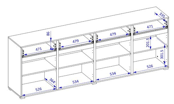 Die Maße der Kommode betragen 225x40x78 cm, was sie perfekt für verschiedene Räume in Ihrem Zuhause macht. Egal, ob Sie sie im Wohnzimmer, Schlafzimmer oder Flur platzieren, ihr elegantes Design wird garantiert Aufmerksamkeit erregen. Sie ist aus MDF gefertigt, was ihre Langlebigkeit und lange Lebensdauer gewährleistet. MDF ist bekannt für seine Feuchtigkeitsbeständigkeit und außergewöhnliche Stabilität, was bedeutet, dass Ihre Kommode viele Jahre lang ihr schönes Aussehen behält.