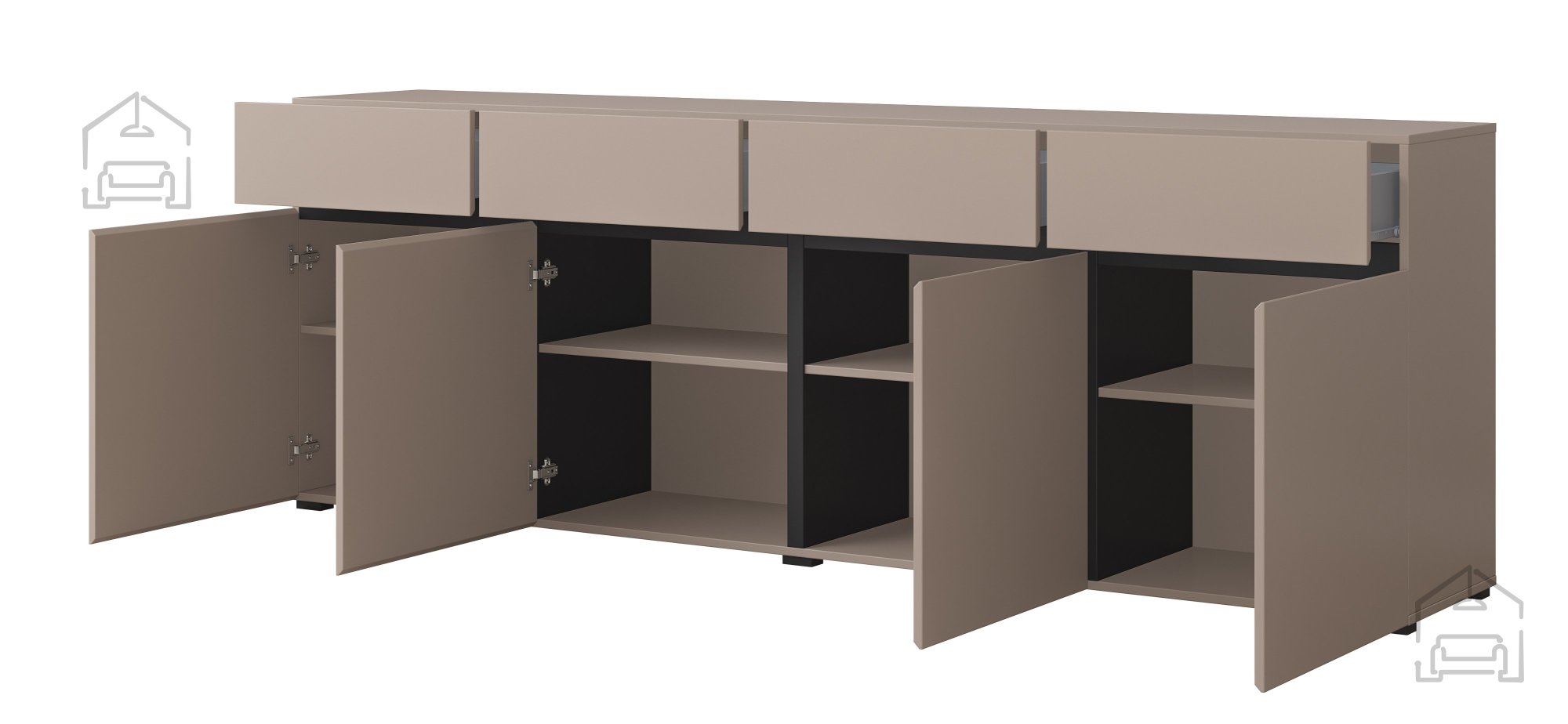 Die Kommode ist in einer raffinierten Farbkombination Kongo/Kongo-Schwarz erhältlich. Dieses Farbschema verleiht jedem Interieur einen Hauch von Eleganz und Raffinesse. Unabhängig davon, ob Ihr Zuhause modern oder klassisch eingerichtet ist, fügt sich diese Kommode mühelos in andere Einrichtungselemente ein. Die besondere Produktfarbe Cashmere unterstreicht zusätzlich ihre Exklusivität.