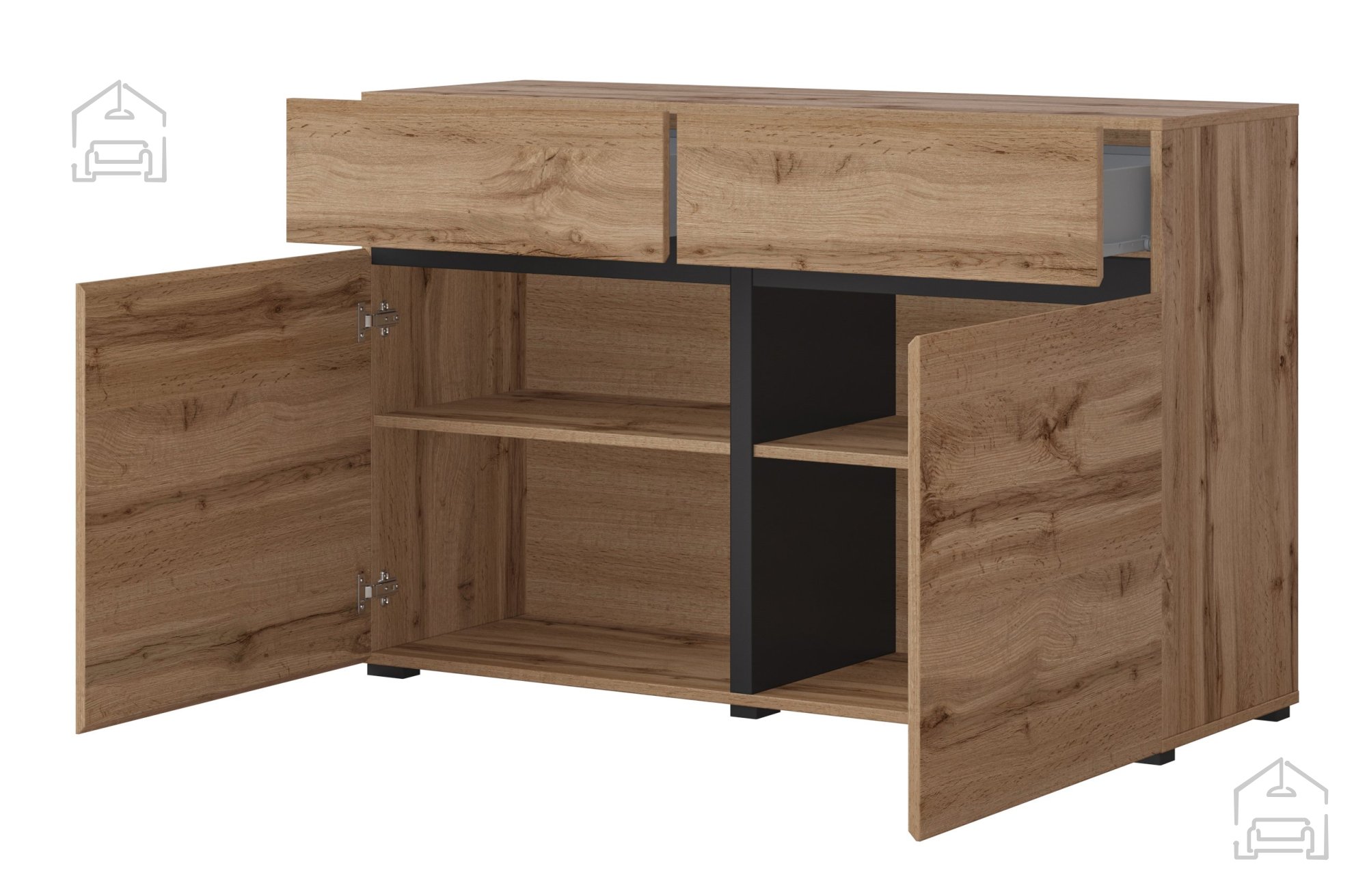 Hergestellt in der renommierten Fabrik Helvetia meble in Polen, garantiert die Kommode Cross höchste Qualität und Langlebigkeit. Das bei der Herstellung verwendete MDF-Material ist bekannt für seine Festigkeit und Widerstandsfähigkeit, was bedeutet, dass dieses Möbelstück Ihrem Zuhause viele Jahre dienen wird. Zudem verleiht die Farbe Eiche Votan Wärme und ein natürliches Gefühl, das Ihren Raum bereichert.