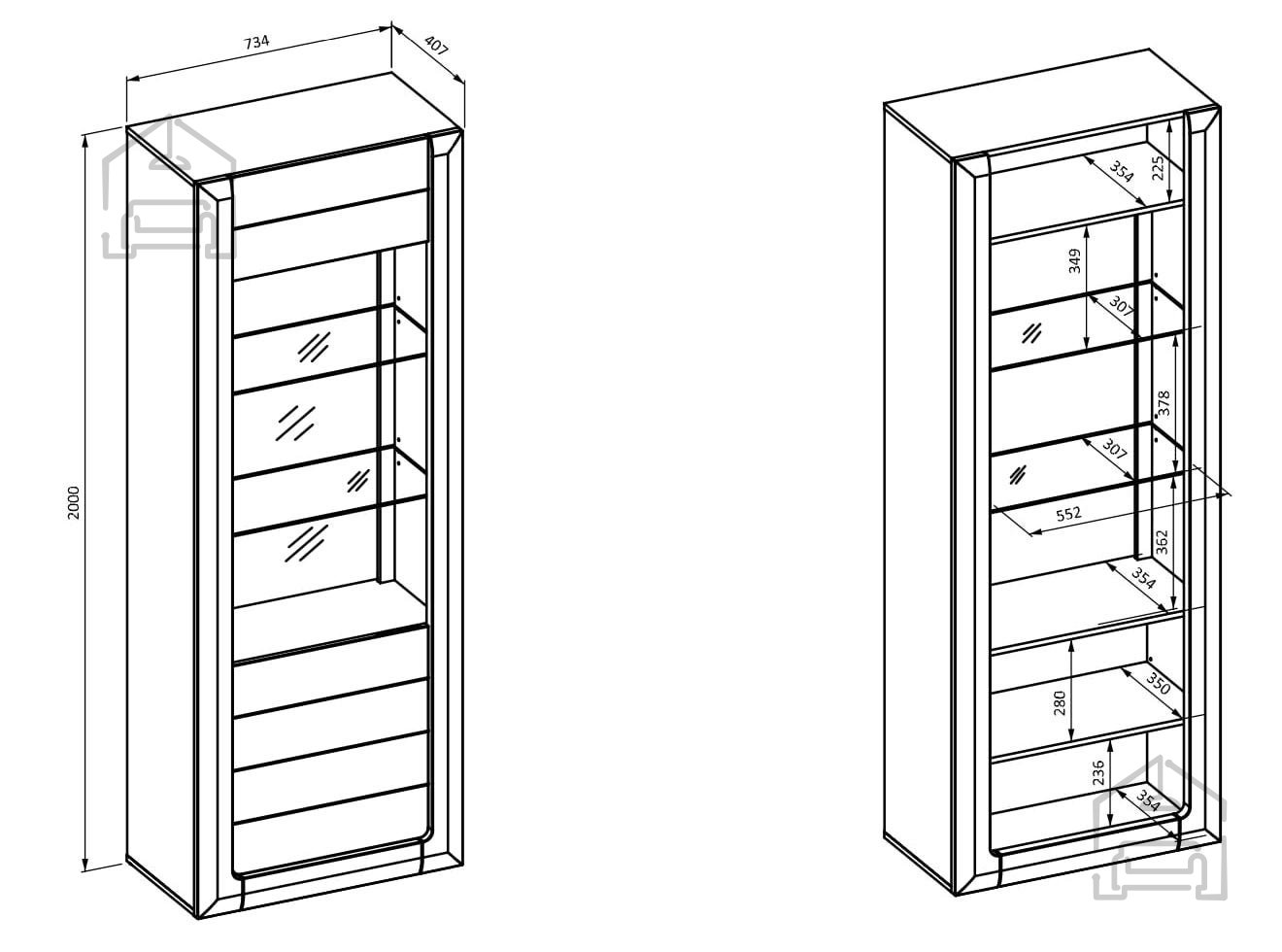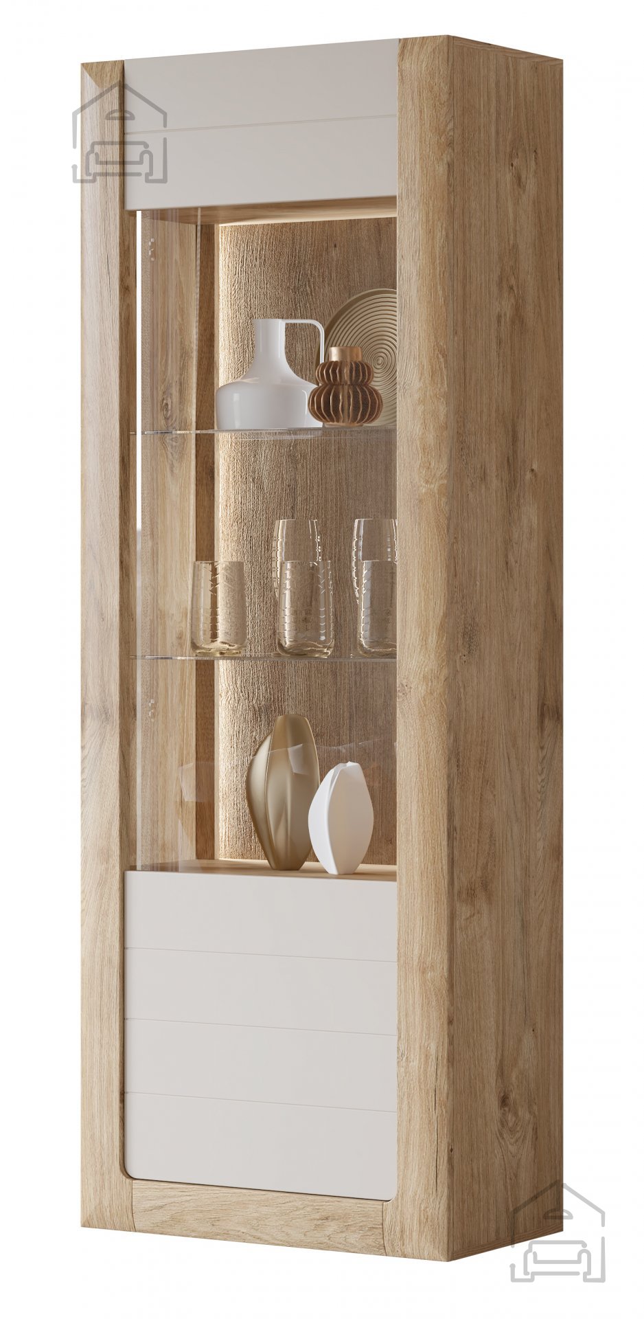 Für diejenigen, die sich noch mehr Eleganz wünschen, ist eine LED-Beleuchtung gegen Aufpreis erhältlich. Die LED-Beleuchtung verbessert nicht nur die visuelle Wirkung Ihrer aufbewahrten Gegenstände, sondern schafft auch eine angenehme und intime Atmosphäre im Raum. Beleuchtete Objekte werden zum Mittelpunkt Ihres Zuhauses, während die LED-Technologie für Energieeffizienz sorgt.