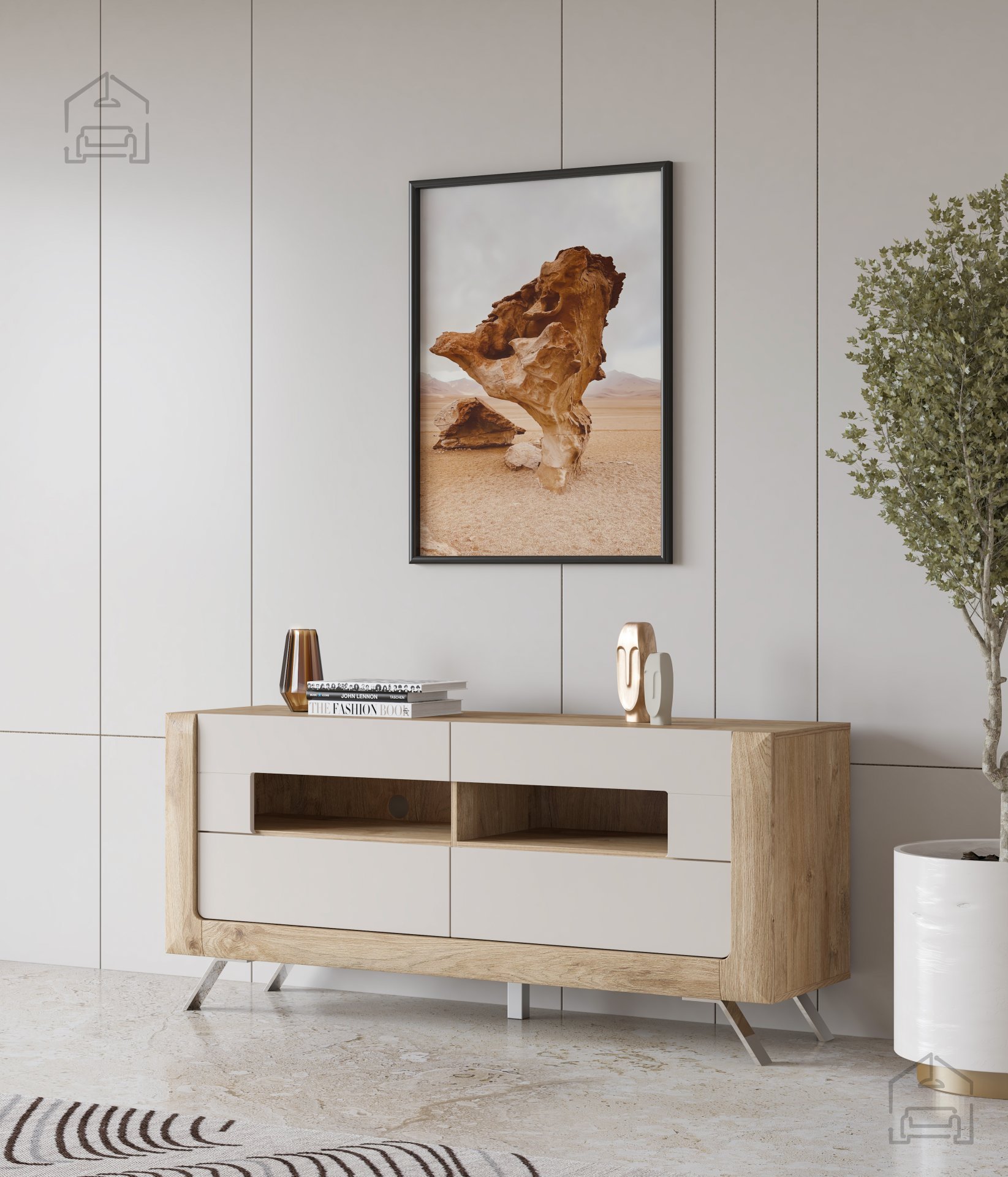 Die Wahl der richtigen Möbel ist entscheidend, um ein gemütliches und funktionales Zuhause zu schaffen. Die TV Kommode Kasai ist so konzipiert, dass sie all Ihre Aufbewahrungsbedürfnisse erfüllt und gleichzeitig die Ästhetik Ihres Wohnzimmers verbessert. Ihre Kombination aus modernem Design und praktischer Anwendung macht sie unverzichtbar für jedes Zuhause. Neben ihrer optischen Attraktivität bietet diese Kommode auch nachhaltige Vorteile, da die verwendeten Materialien mit Blick auf Umwelt und Nachhaltigkeit ausgewählt wurden.