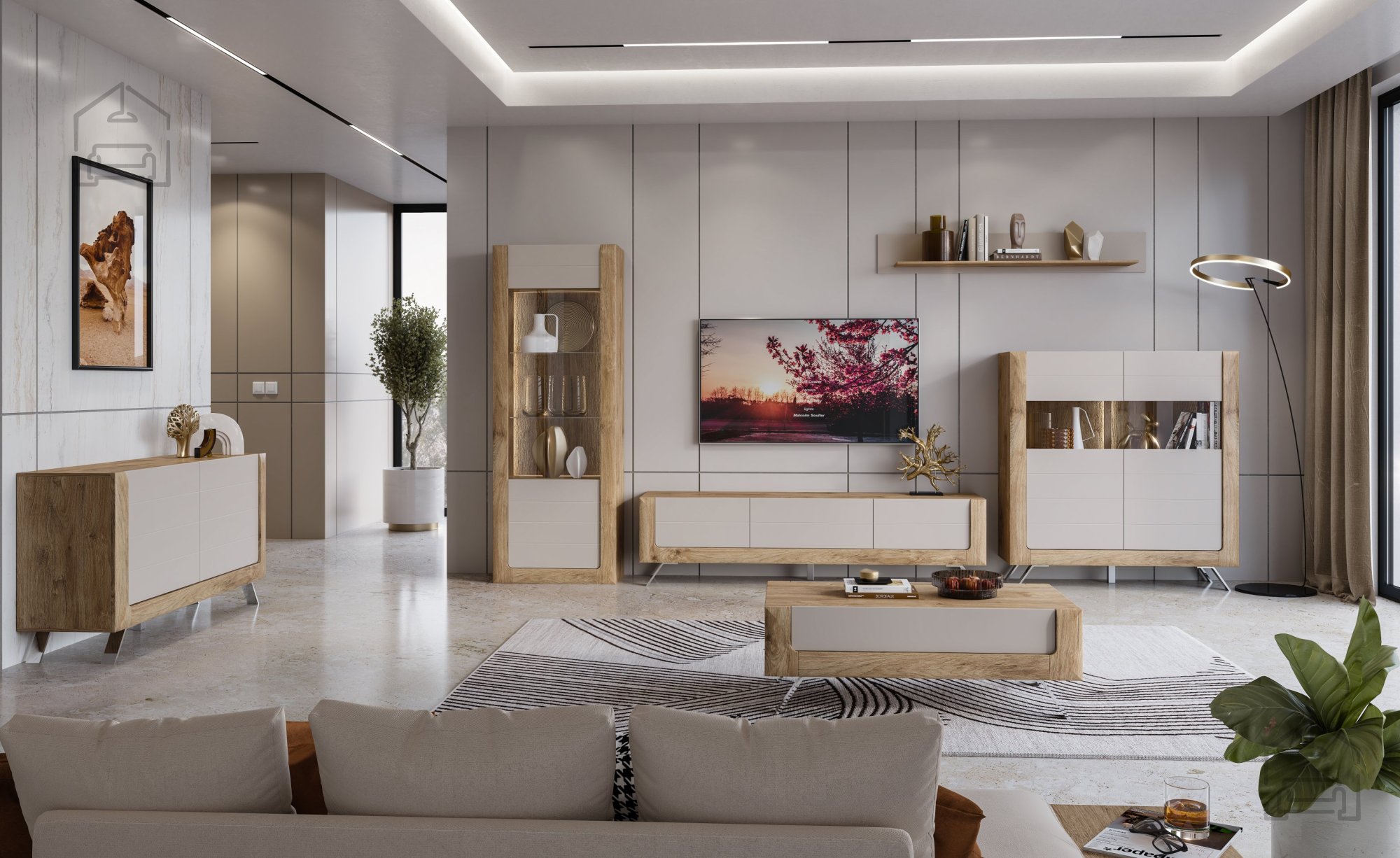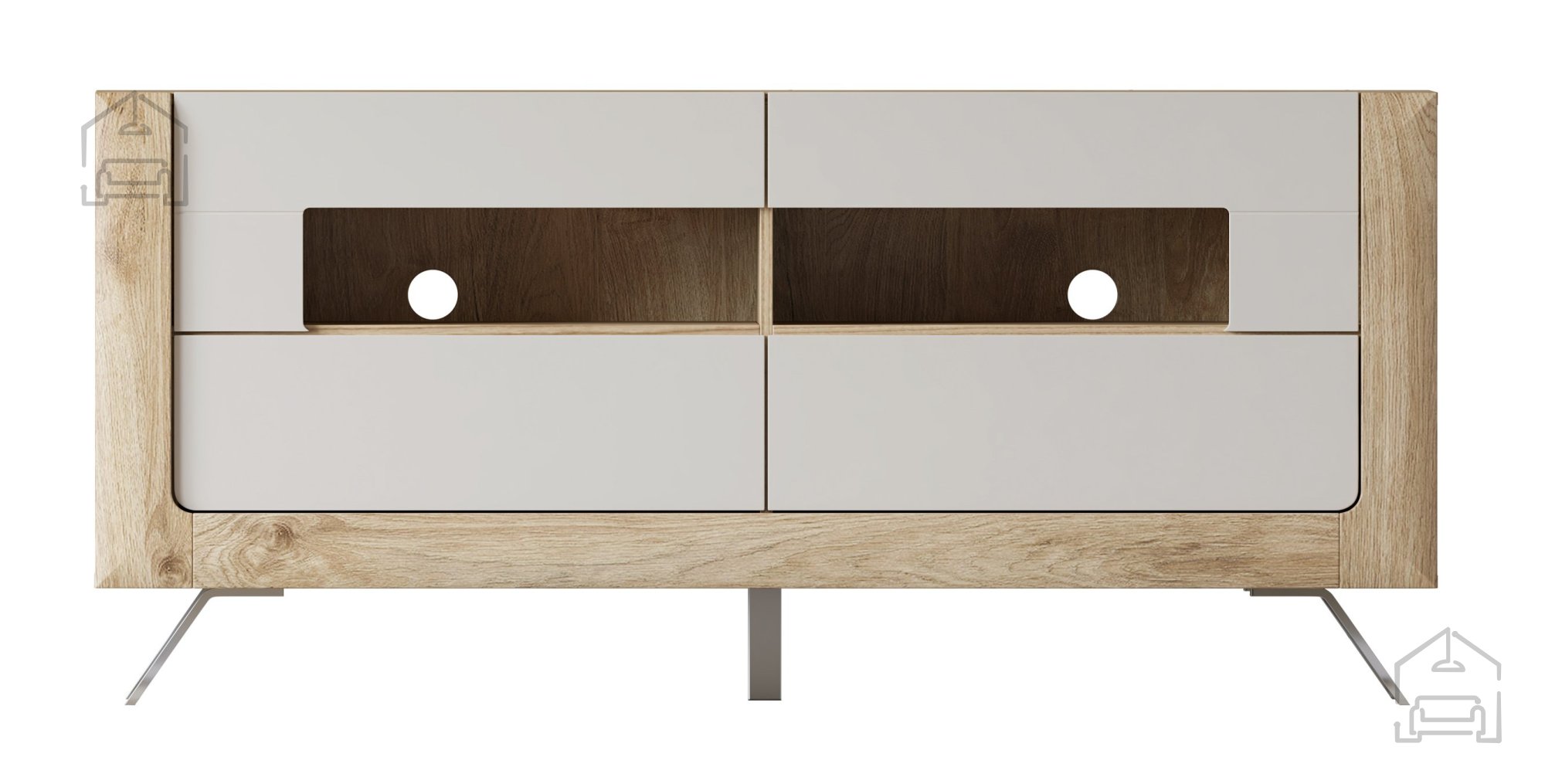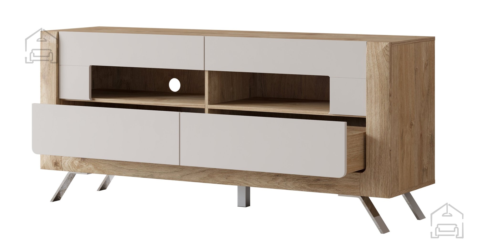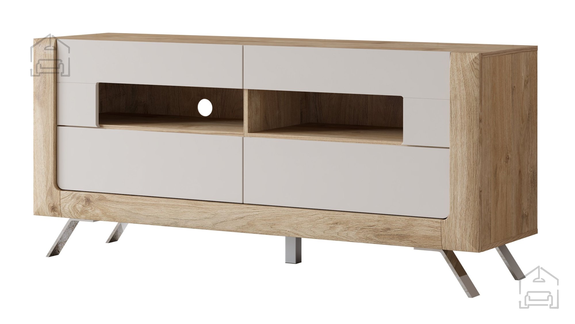 Wir präsentieren Ihnen die TV Kommode Kasai – Gold Harbor Eiche/Perfect Touch Cashmir – 24HKMI41, eine perfekte Kombination aus Eleganz, Funktionalität und höchster Verarbeitungsqualität. Diese außergewöhnliche TV Kommode, hergestellt in der renommierten Fabrik Helvetia Meble in Polen, ist eine erstklassige Ergänzung für jedes moderne Zuhause. Mit den Maßen 161x48x73 cm fügt sie sich nahtlos in Ihr Wohnzimmer ein und bietet zugleich großzügigen Stauraum sowie ein ästhetisches Erscheinungsbild.