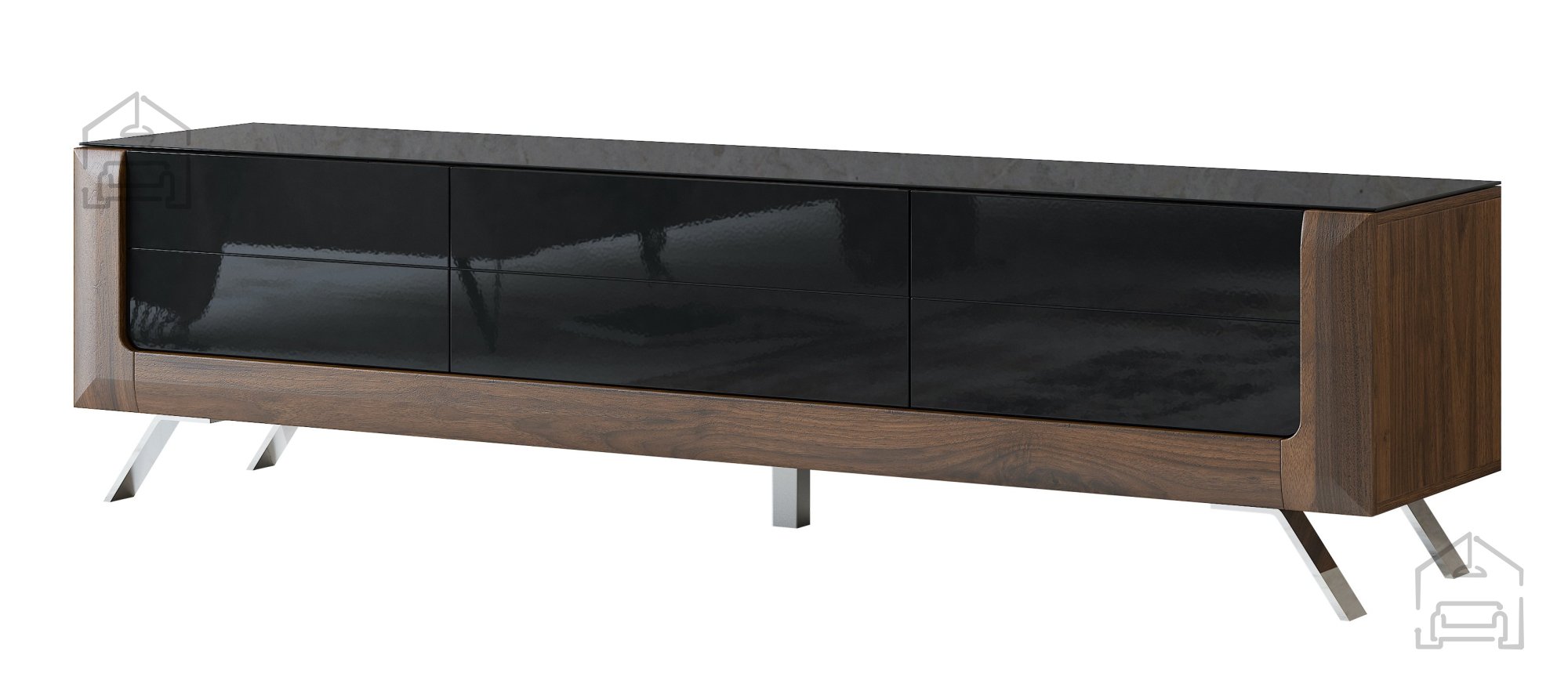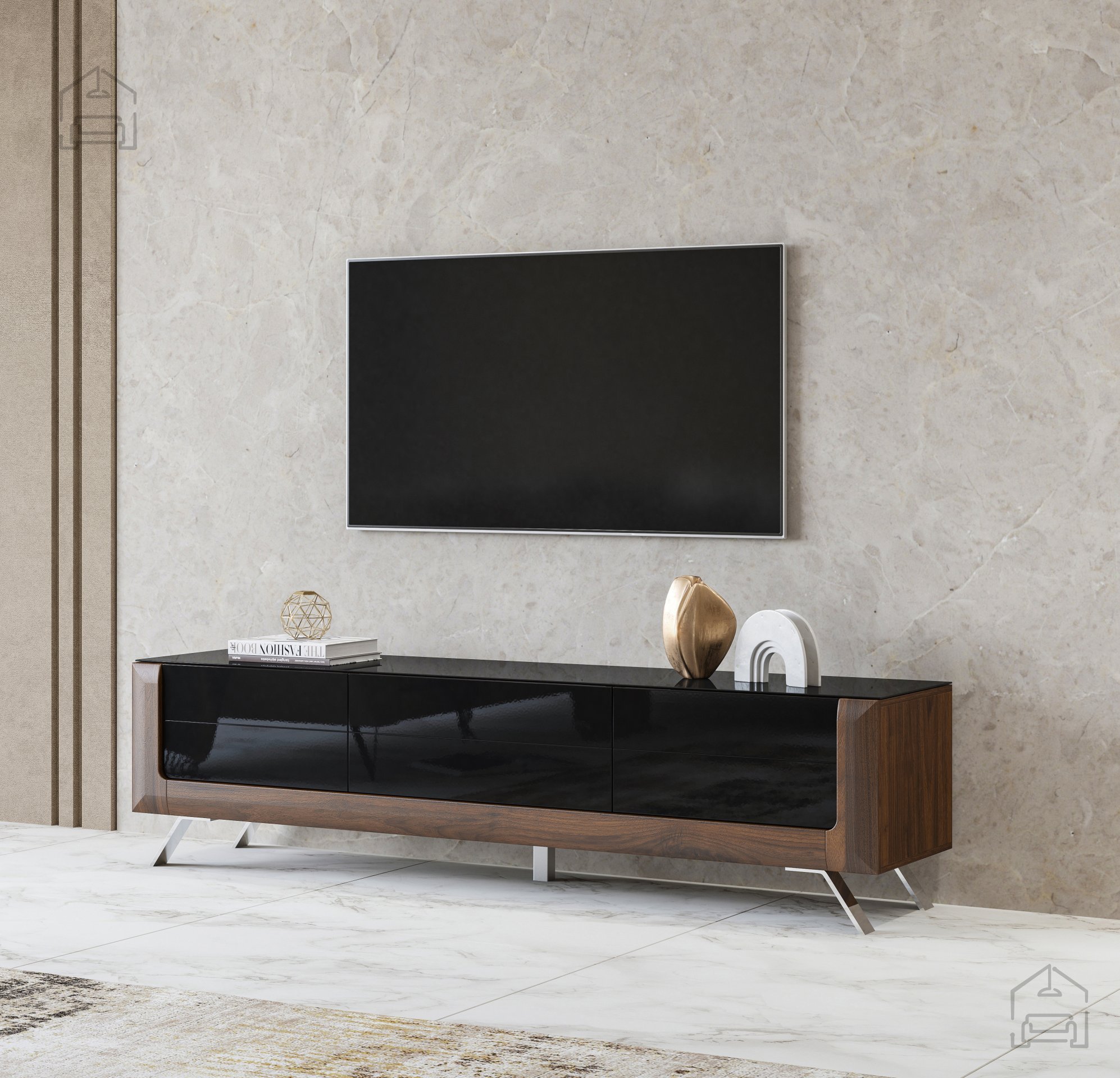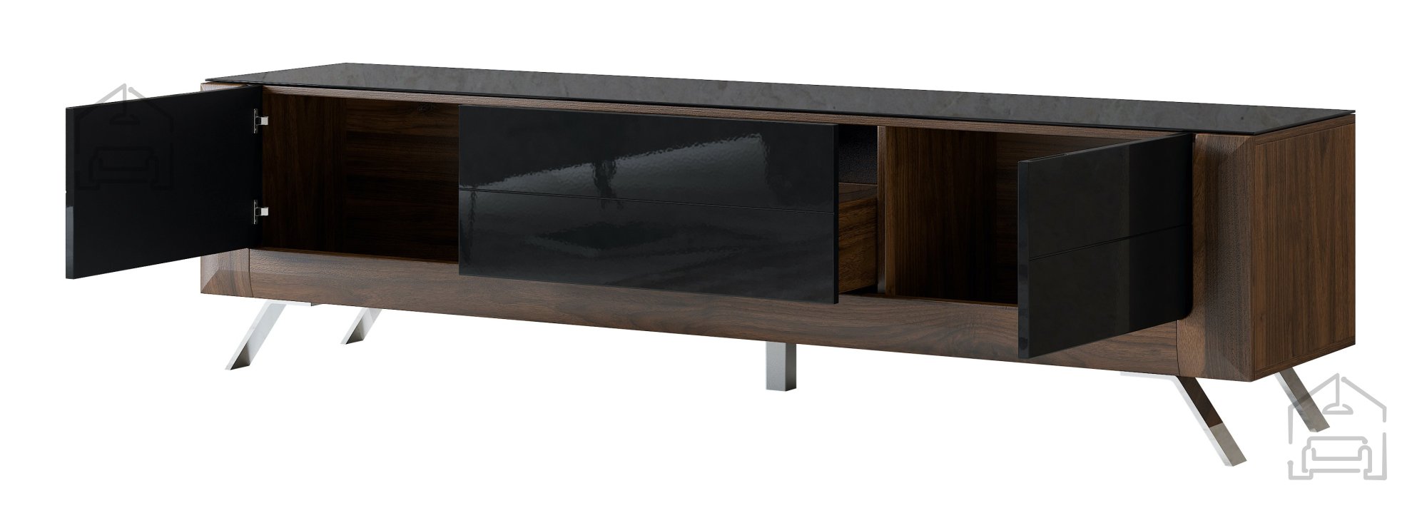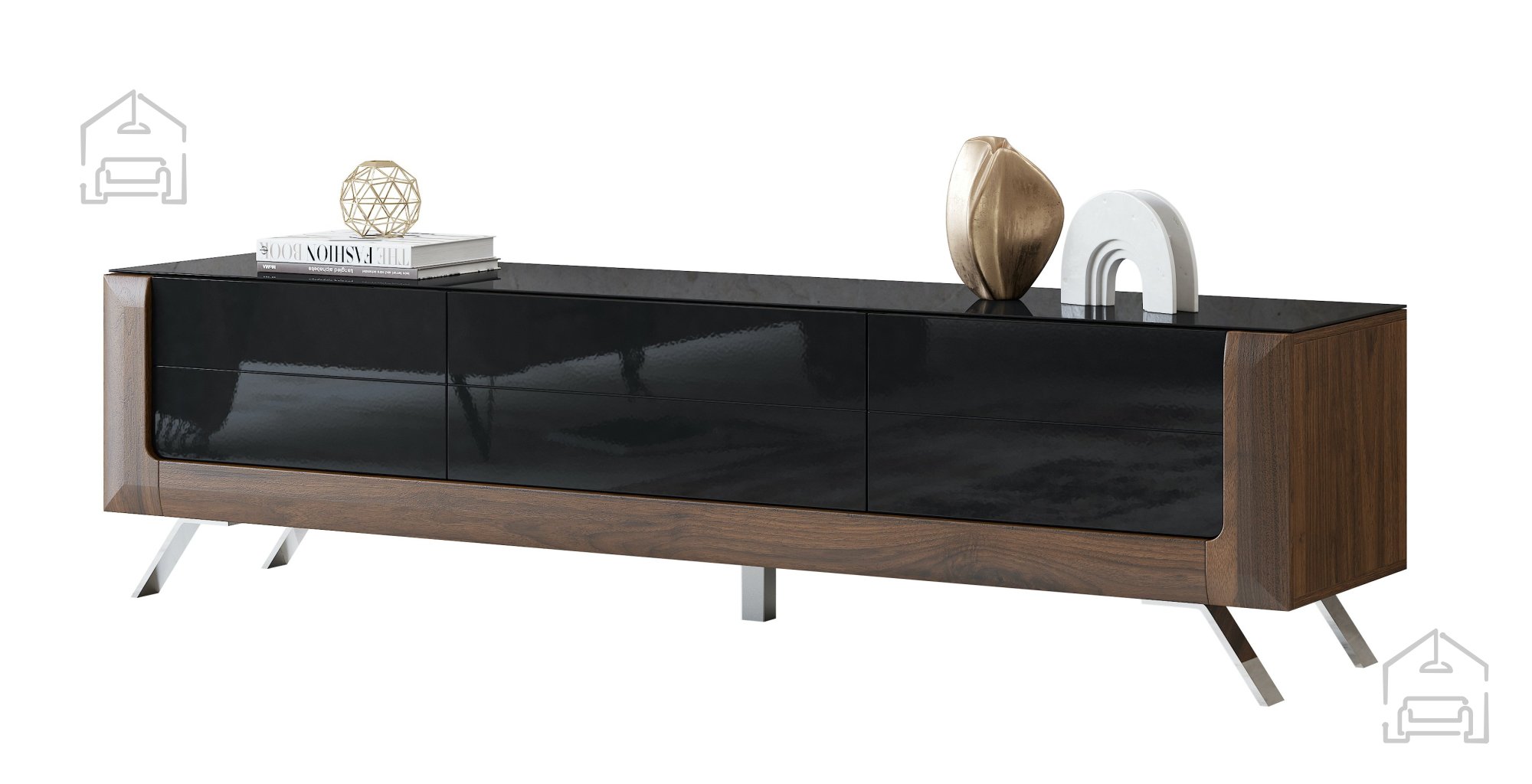 Die TV-Kommode Kasai ist nicht nur ein Möbelstück, sondern ein Ausdruck Ihres Stils und Geschmacks. Sie wurde in der Fabrik Helvetia Meble in Polen entworfen, was bedeutet, dass sie europäische Qualität mit den neuesten Trends im Interior Design verbindet. Ihre Farbkombination aus Nuss Columbia und Schwarz Hochglanz verleiht jedem Raum einen Hauch von Luxus und Raffinesse.