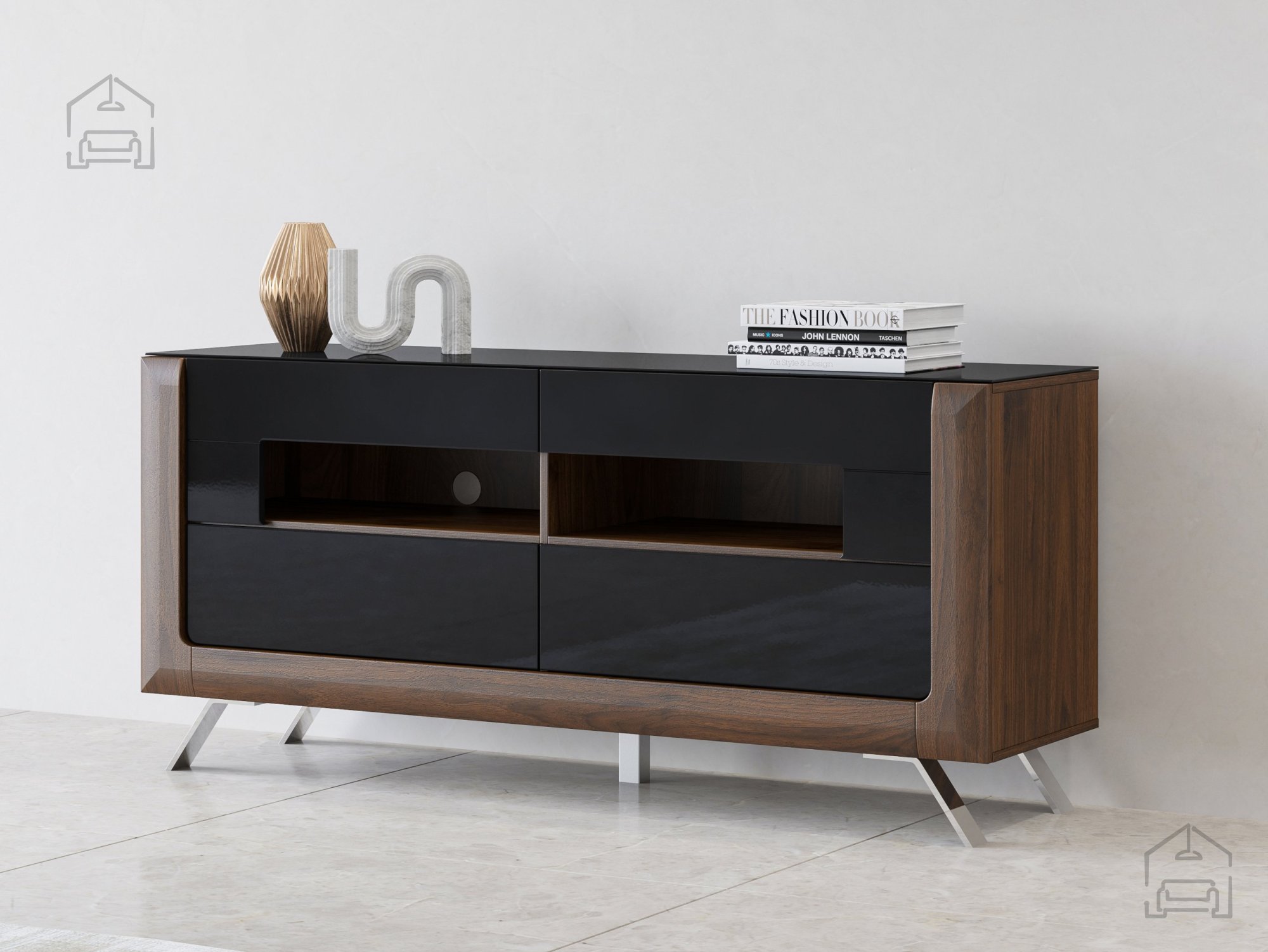 Investieren Sie in Qualität und Stil mit der TV-Kommode Kasai – Nussbaum Columbia/Schwarz Hochglanz und lassen Sie sie zu einem unverzichtbaren Teil Ihres Zuhauses werden.