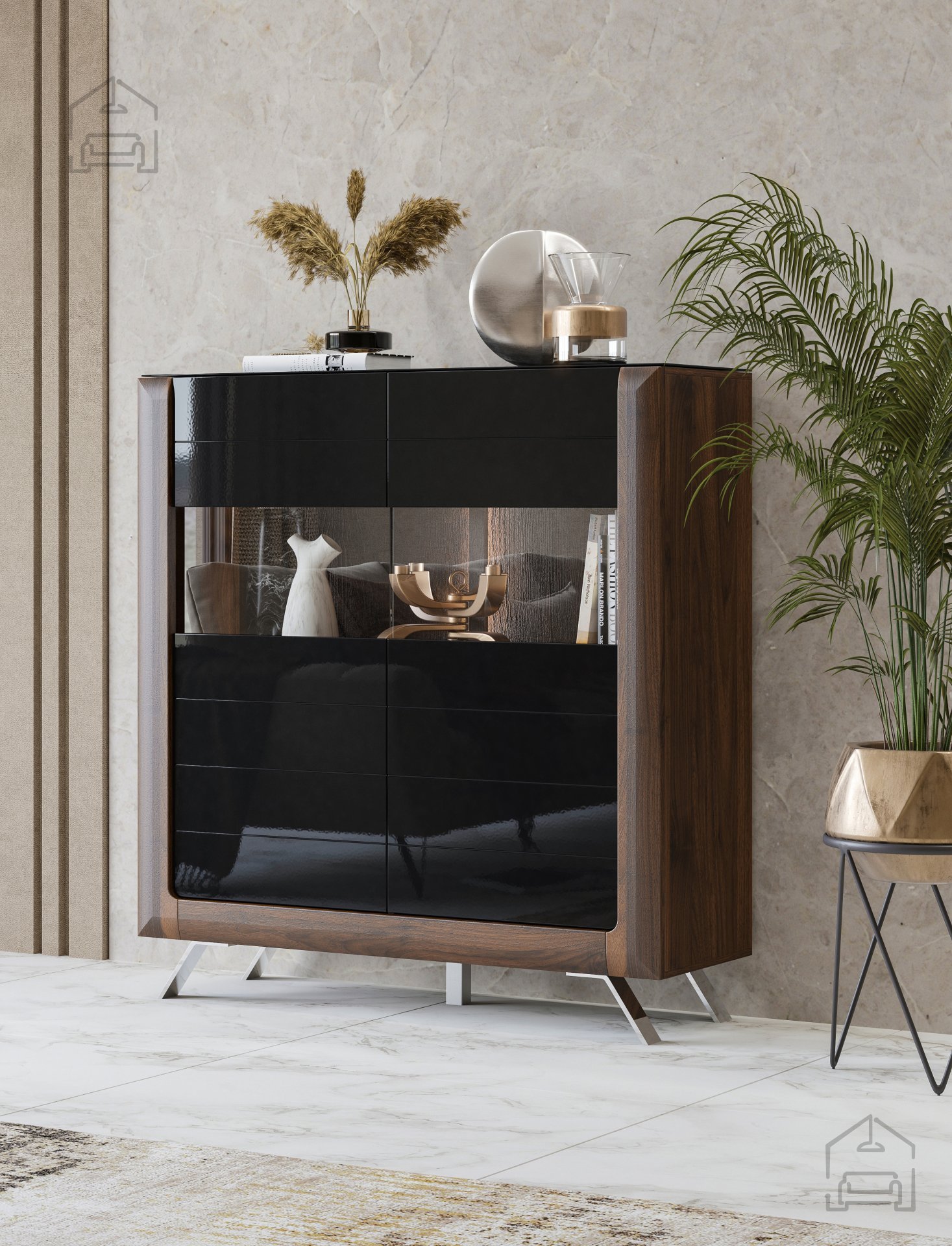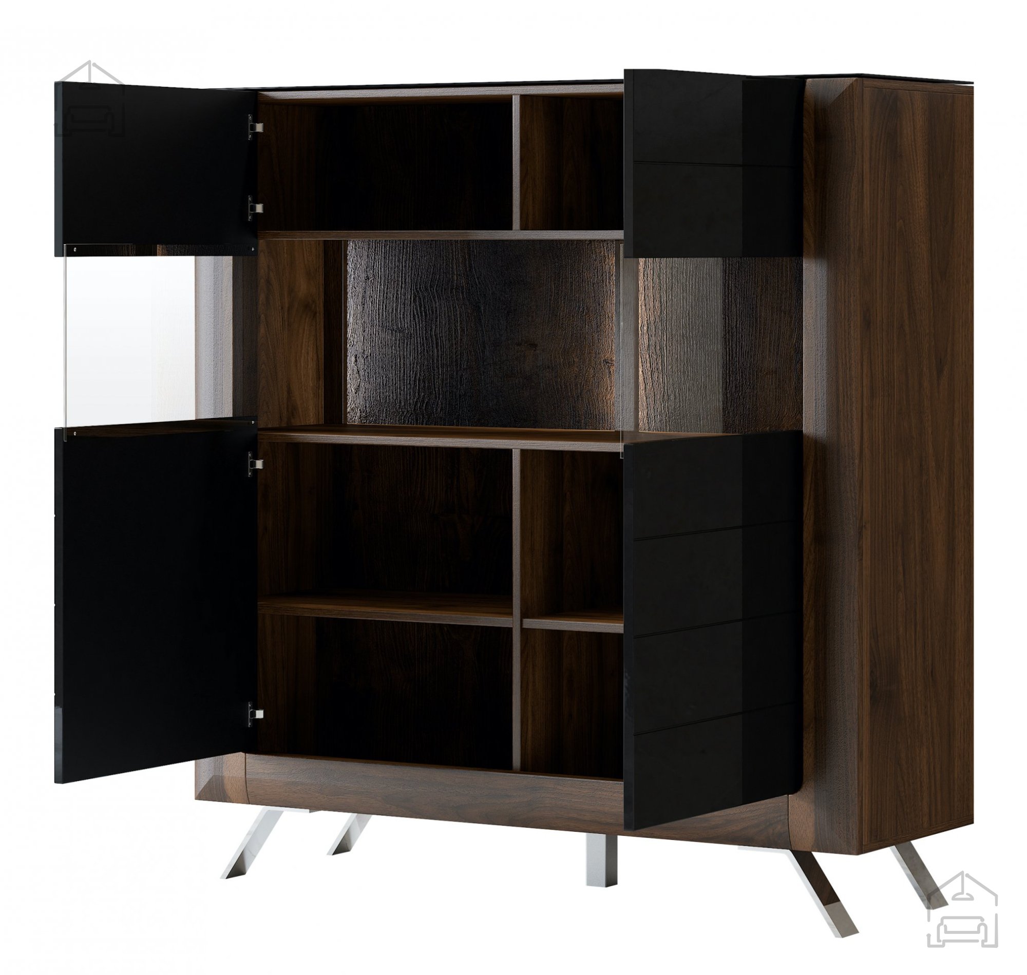 Die Vitrine Kasai ist mehr als nur ein Möbelstück; sie ist ein Ausdruck von Stil und Funktionalität. Mit ihren beeindruckenden Maßen von 128x44x137 cm und dem eleganten Design in der Farbe Nuss Columbia/Schwarz Hochglanz stellt diese Vitrine die perfekte Kombination aus Ästhetik und Praktikabilität dar.