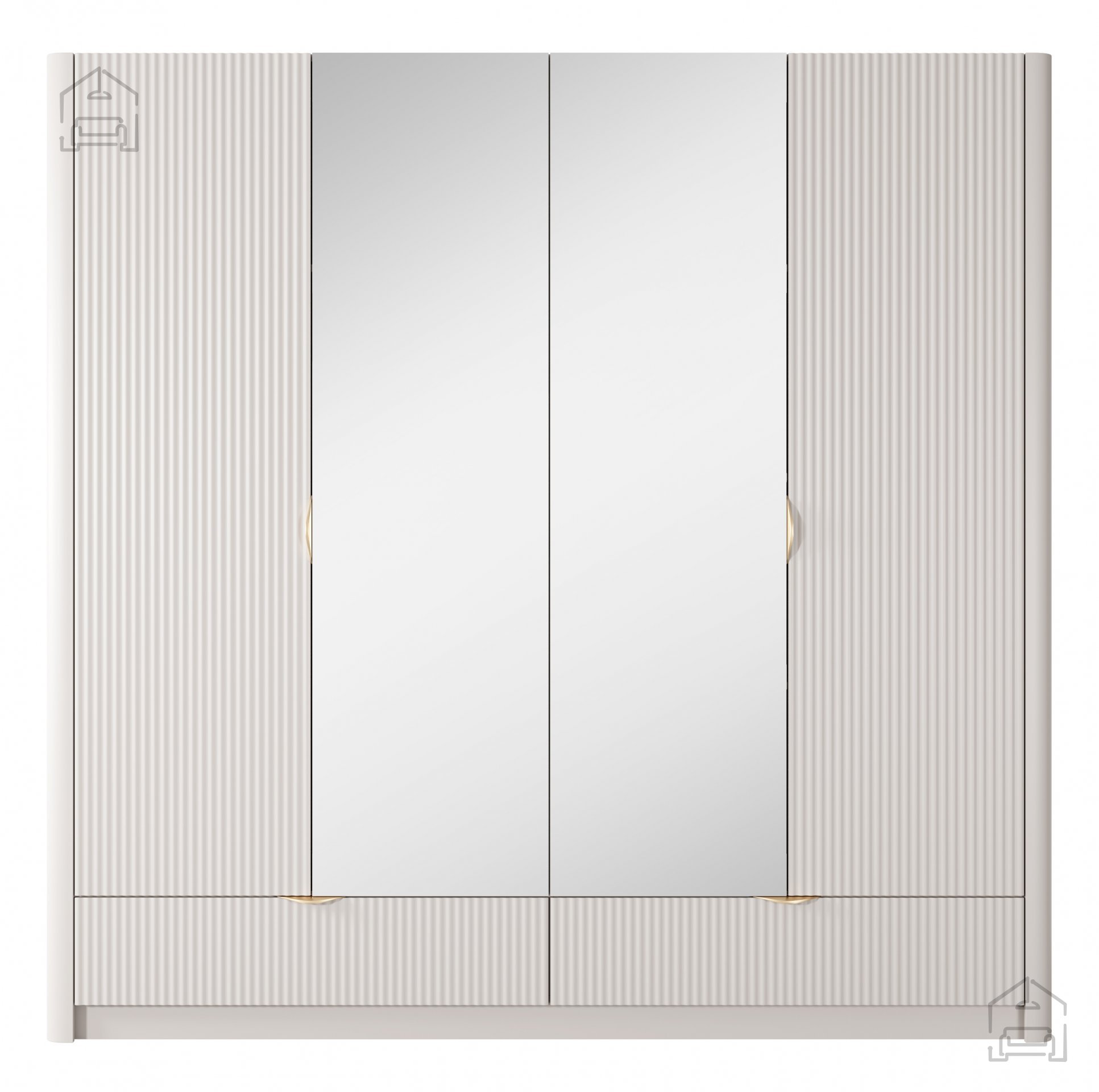 Die goldfarbenen Metallgriffe verbessern nicht nur die Funktionalität des Schranks, sondern verleihen ihm auch einen Hauch von Luxus und Glamour.