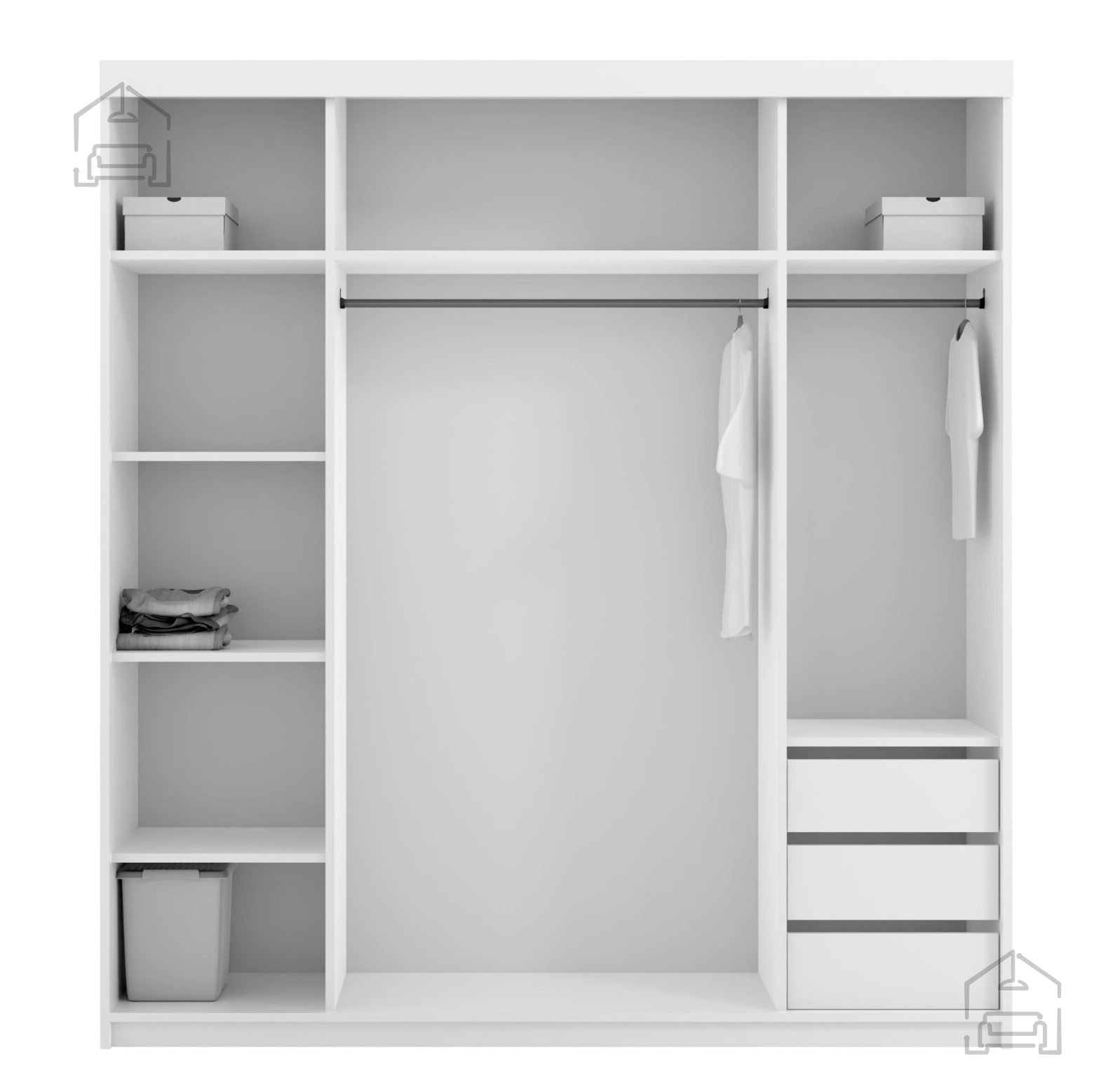 Dieser geräumige Kleiderschrank mit Schiebetüren stellt die perfekte Kombination aus Funktionalität, modernem Design und hochwertiger Verarbeitung dar, die für die Marke Arkos meble aus Polen typisch ist. Er ist aus strapazierfähiger Spanplatte gefertigt, die für ihre Widerstandsfähigkeit gegen Kratzer, Feuchtigkeit und hohe Temperaturen bekannt ist, was eine lange Lebensdauer und den Erhalt eines makellosen Aussehens auch bei täglichem Gebrauch gewährleistet. Mit sorgfältig bearbeiteten Kanten und durchdacht angeordneten Innenflächen ermöglicht der Schrank German 200 eine perfekte Organisation von Kleidung, Schuhen und Accessoires und bringt gleichzeitig eine ruhige Eleganz in den Raum durch die Kombination von Schwarz, Weiß und Grau.