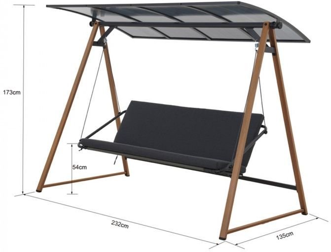 Stahlrahmen und Polycarbonat-Dach: Gartenschaukel Salzburg – Mirpol. Diese elegante und funktionale Schaukel, die für drei Personen konzipiert ist, vereint moderne Ästhetik mit einer robusten Konstruktion, die eine lange Lebensdauer und komfortable Entspannung im Freien gewährleistet. Ihre beeindruckenden Abmessungen von 232 × 135 × 173 cm ermöglichen bequemes Sitzen, während die pulverbeschichtete Stahlkonstruktion für Stabilität und Witterungsbeständigkeit sorgt. Dank der Kombination hochwertiger Materialien – Stahl, Polyester und Oxford-Gewebe – ist das Modell Salzburg die perfekte Wahl für jede Terrasse, jeden Garten oder größeren Balkon.