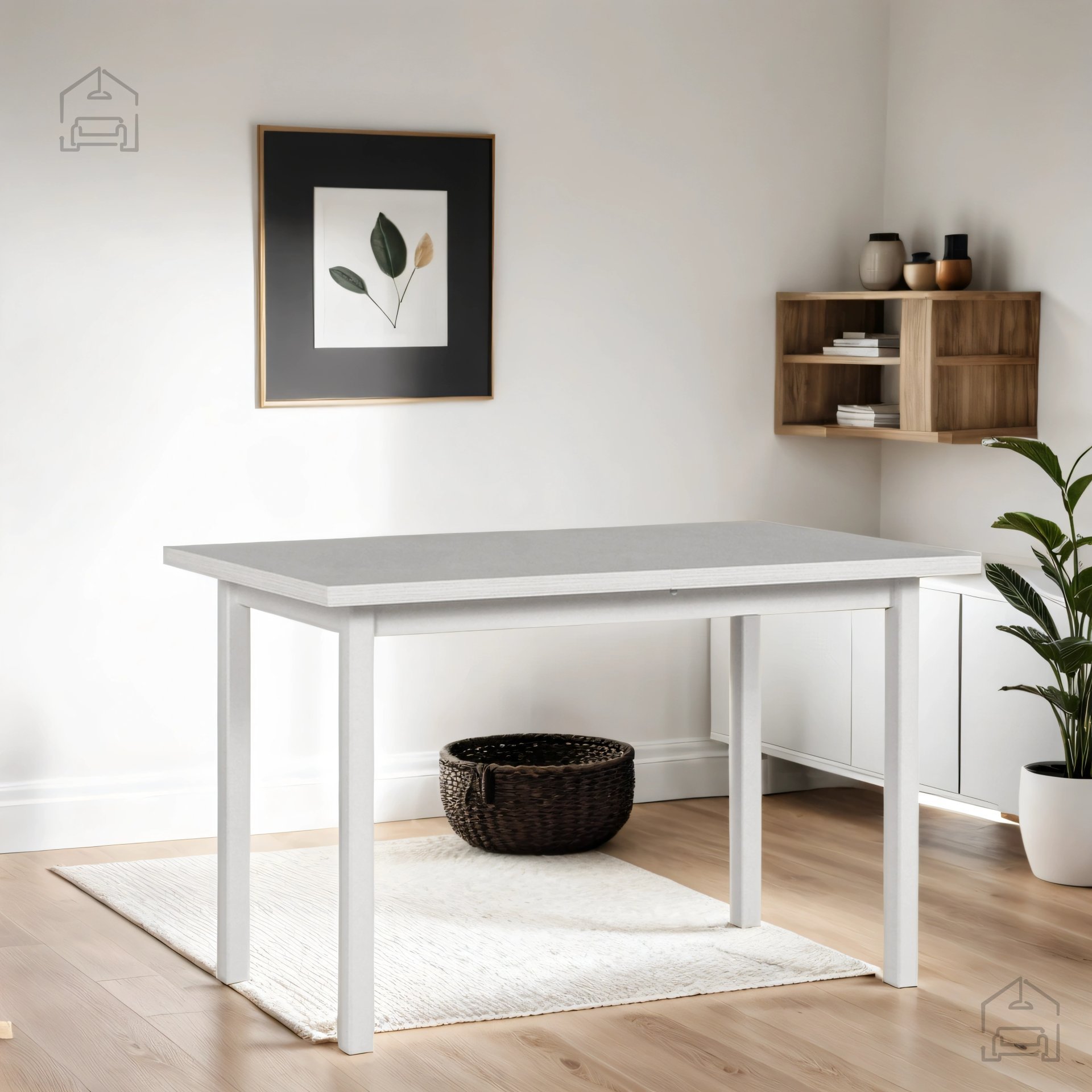Der Tisch Max 3 passt hervorragend zu Holz- oder Polsterstühlen in neutralen Tönen wie Grau, Beige oder Naturholz. Ebenso harmoniert er gut mit Metallelementen und Beleuchtung im modernen Industriestil. Aufgrund seiner weißen Farbe vergrößert er den Raum optisch, daher ist er die ideale Wahl für kleinere Küchen, wo jedes Detail zählt. Er kann auch als Arbeitsplatz oder Basteltisch verwendet werden, da seine Oberfläche verschiedene Belastungen und Aktivitäten aushält.