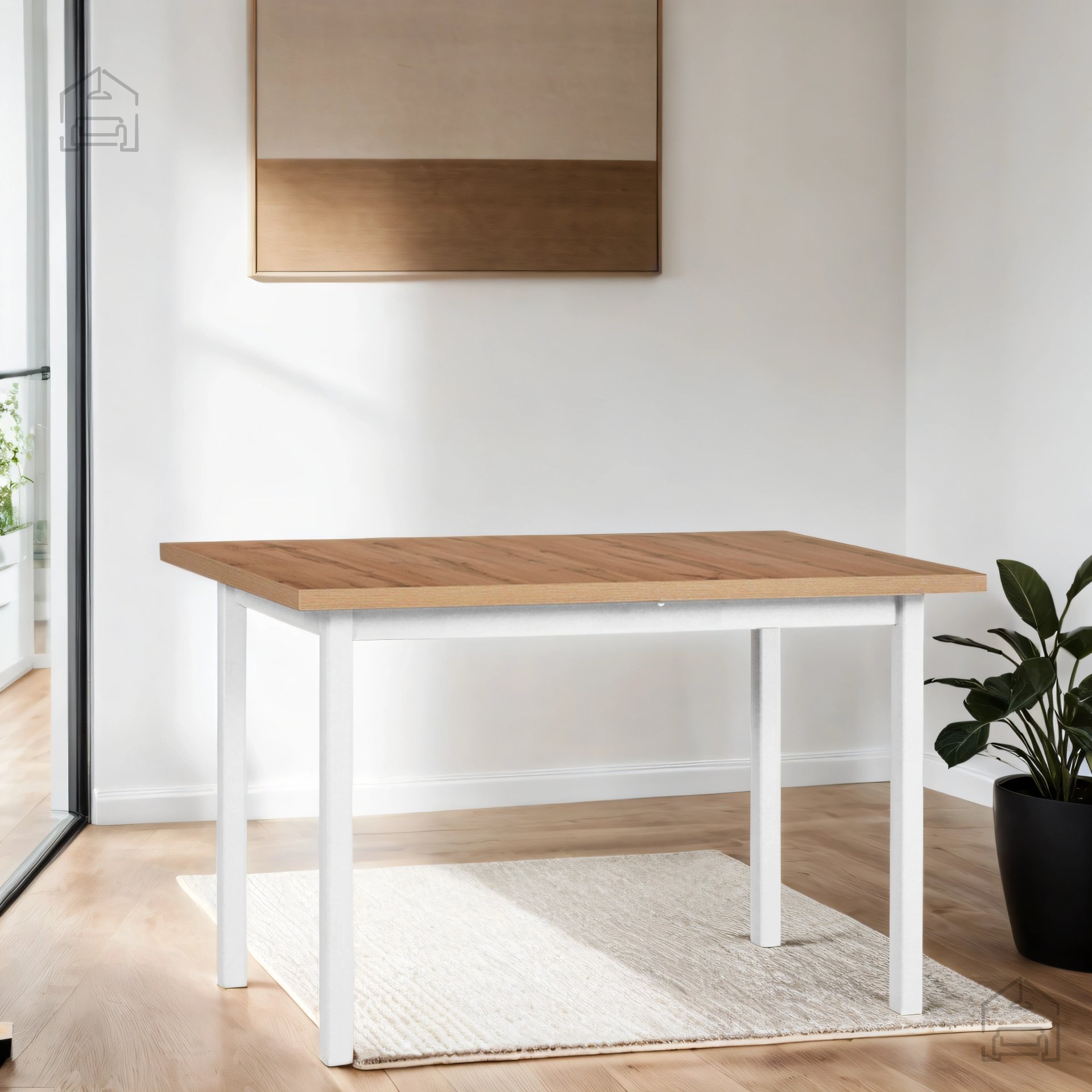 Der Esstisch Max 3 in der Farbkombination Weiß/Grandson ist ein herausragendes Beispiel für ein ausgewogenes Verhältnis zwischen Ästhetik und Funktionalität, das der polnische Hersteller Drewmix durch traditionelles Holzverarbeitungswissen und modernes Designgefühl erreicht. Sein Rahmen aus massivem Buchenholz bringt Festigkeit, Stabilität und natürliche Wärme, während die laminierte Platte Kratzfestigkeit und einfache Reinigung gewährleistet. Mit seinen Abmessungen von 120 × 70 × 75 cm passt dieser Tisch perfekt in kleinere und mittelgroße Esszimmer und ermöglicht eine bequeme Anordnung von vier Personen ohne Engegefühl.