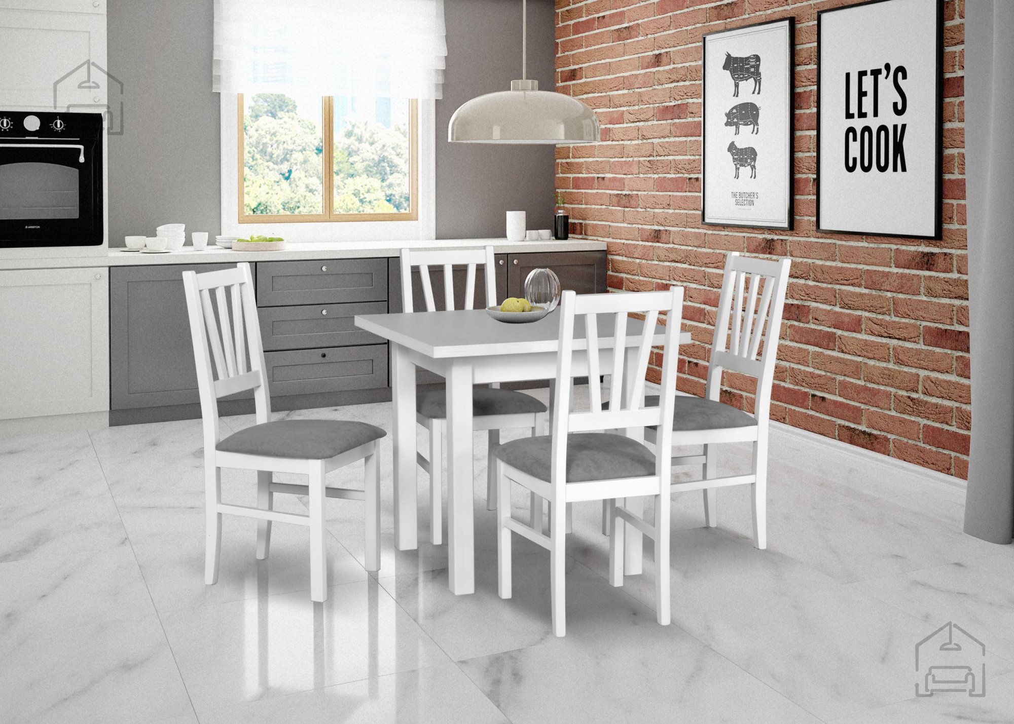 Die Maße des Tisches betragen Breite 80 cm, Tiefe 80 cm und Höhe 76 cm. Aufgrund seiner kompakten Abmessungen eignet sich der Tisch auch für kleinere Küchen oder Essnischen, in denen jeder Zentimeter kostbar ist. Dennoch bietet er ausreichend Platz für bequemes Sitzen von vier Personen in der Grundversion und in der ausgezogenen Version für zwei weitere Personen. Der Tisch passt gut zu Holz- oder Polsterstühlen, besonders in hellen Farbtönen, die sein klares Design betonen.