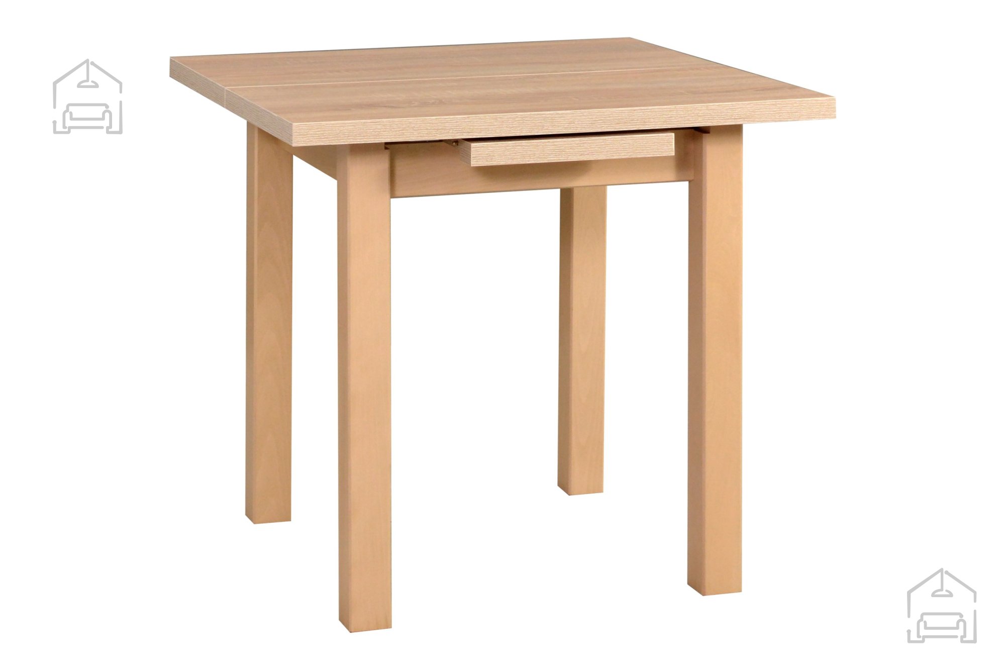 Der Esstisch Max 7 des Herstellers Drewmix ist ein perfektes Beispiel für das Gleichgewicht zwischen Funktionalität, Ästhetik und Verarbeitungsqualität, das die langjährige Tradition der polnischen Möbelherstellung mit sich bringt. Er ist aus massivem Buchenholz mit einer laminierten Tischplatte in der beliebten Farbe Eiche Sonoma gefertigt, was ein Gefühl von Wärme und Behaglichkeit schafft und gleichzeitig Festigkeit und Widerstandsfähigkeit gegen den täglichen Gebrauch gewährleistet. Dank des einfachen, aber zuverlässigen Ausziehmechanismus lässt sich der Tisch leicht von einer Grundlänge von 80 cm auf 110 cm erweitern, was eine bequeme Unterbringung zusätzlicher Gäste ermöglicht, wenn Sie sie mit einer gemütlichen Mahlzeit oder Feier überraschen möchten.