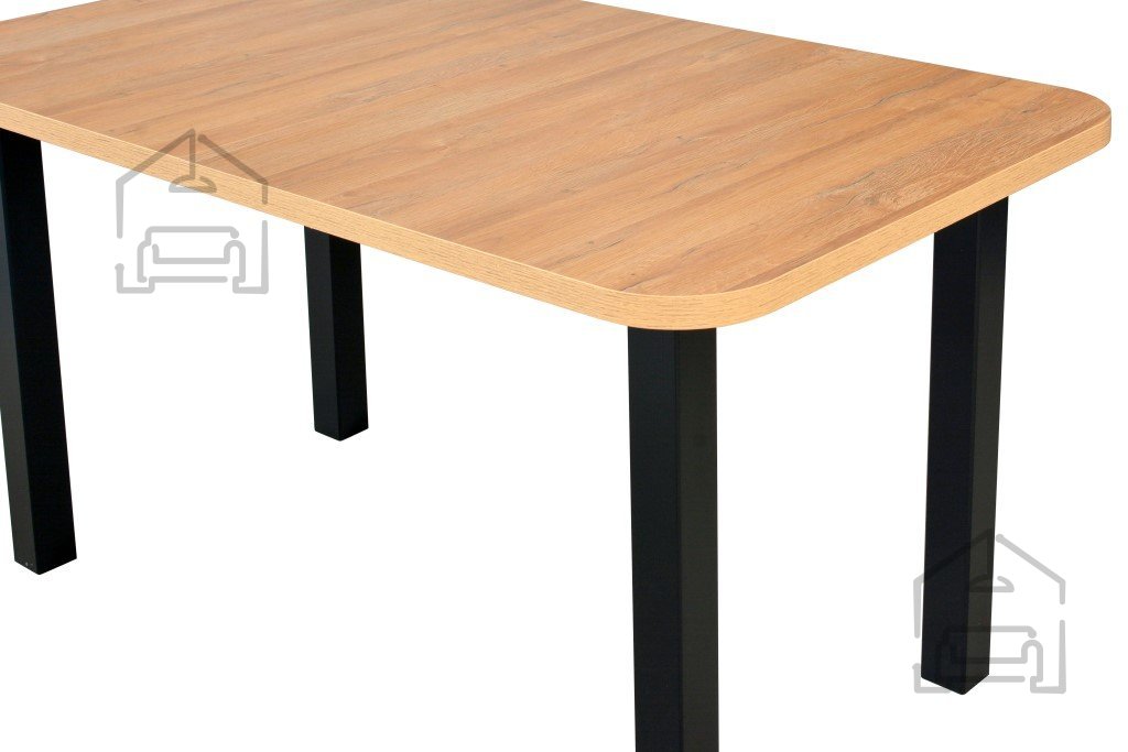 Die Farbvariante Schwarz/Grandson bringt einen interessanten visuellen Kontrast zwischen dem dunklen, eleganten Untergestell und dem wärmeren Ton der Holzmaserung auf der Platte. Eine solche Kombination ermöglicht es, dass sich der Tisch perfekt an verschiedene Einrichtungsstile anpasst – von skandinavischer Schlichtheit bis hin zu industriellem Charakter. Mit passenden Stühlen aus derselben Kollektion oder in kontrastierenden Farben lässt sich ein persönliches und harmonisches Esszimmer schaffen. Aufgrund seines universellen Designs passt der Wenus 2 auch gut in kleinere Küchen, wo jeder Zentimeter zählt, da er Funktionalität ohne Kompromisse bei der Ästhetik bietet.