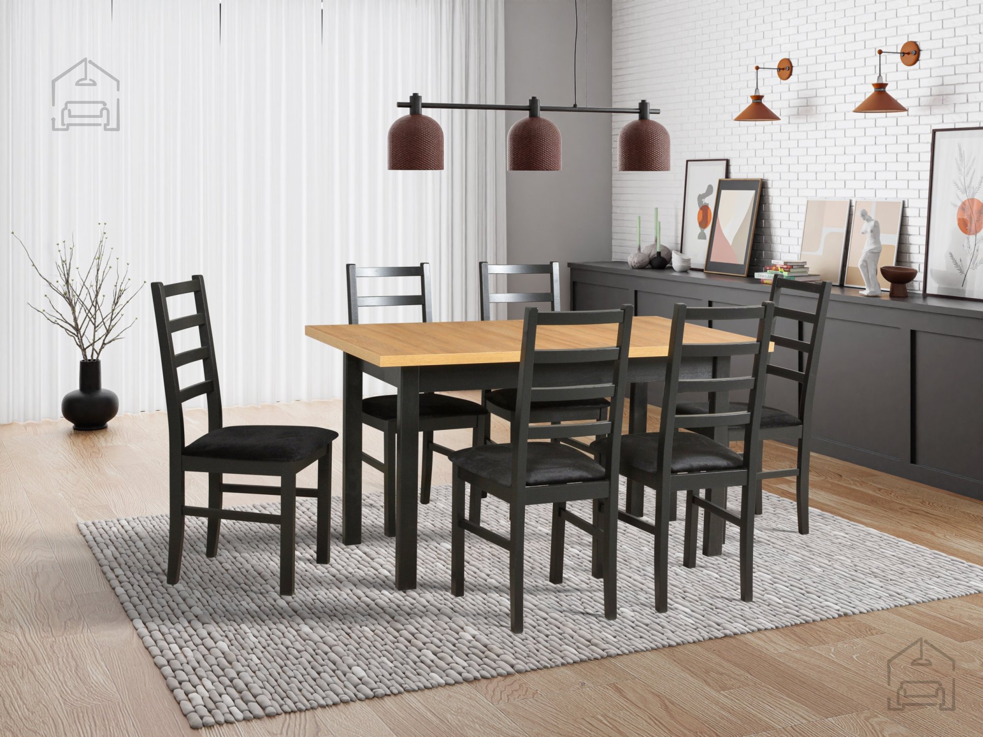 Der Tisch Modena 1 XL ist für diejenigen konzipiert, die die Wärme von Holz und ein modernes Erscheinungsbild schätzen. Das massive Buchenholz des Rahmens sorgt für eine lange Lebensdauer, während die laminierte Oberfläche in der Farbkombination Schwarz und Grandson einen angenehmen Kontrast und Widerstandsfähigkeit gegen Abnutzung bietet. Die Oberfläche ist leicht zu reinigen, was besonders in dynamischen Familien oder bei häufigen Treffen wichtig ist. Aufgrund der subtilen Farbtöne passt der Tisch hervorragend sowohl zu hellen als auch zu dunkleren Küchen- oder Esszimmerinterieurs.