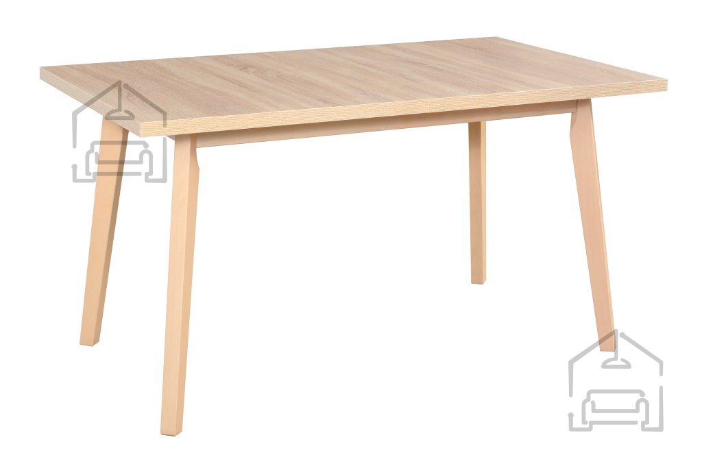 Der Tisch Wien 5 ist das Ergebnis sorgfältig ausgewählter Materialien und präziser Verarbeitung, die für den polnischen Hersteller Drewmix charakteristisch sind. Das aus massivem Buchenholz gefertigte Gestell sorgt für Stabilität und eine lange Lebensdauer. Buche ist bekannt für ihre Festigkeit und gleichmäßige Struktur, was sie zur idealen Wahl für Möbel macht, die täglich verwendet werden. Die warme Farbe der Sonoma-Eiche ergänzt die subtilen natürlichen Holzmaserungen und schafft eine angenehme, helle Atmosphäre im Raum. Die Tischoberfläche ist mit Laminat überzogen, das nicht nur die Ästhetik betont, sondern auch vor mechanischen Beschädigungen und Feuchtigkeit schützt – eine praktische Eigenschaft, die Pflege und Reinigung erleichtert.