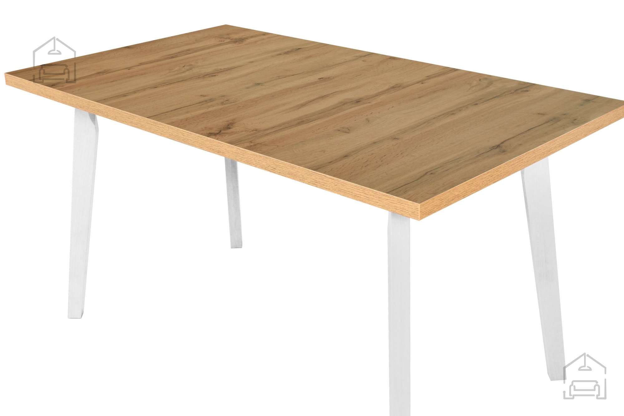 Der Esstisch Oslo 5 – Drewmix vereint skandinavische Schlichtheit, Funktionalität und die Wärme von natürlichem Holz. Er ist aus massivem Buchenholz gefertigt, was ihm außergewöhnliche Festigkeit und Stabilität verleiht, während die laminierte Tischplatte in der Farbkombination weiß/wotan für ein modernes und ästhetisch ansprechendes Erscheinungsbild sorgt. Der Tisch lässt sich mit einem einfachen Ausziehmechanismus von einer Basislänge von 140 cm auf 180 cm verlängern, was es ermöglicht, eine größere Anzahl von Gästen oder Familienmitgliedern bei besonderen Anlässen bequem zu bewirten.