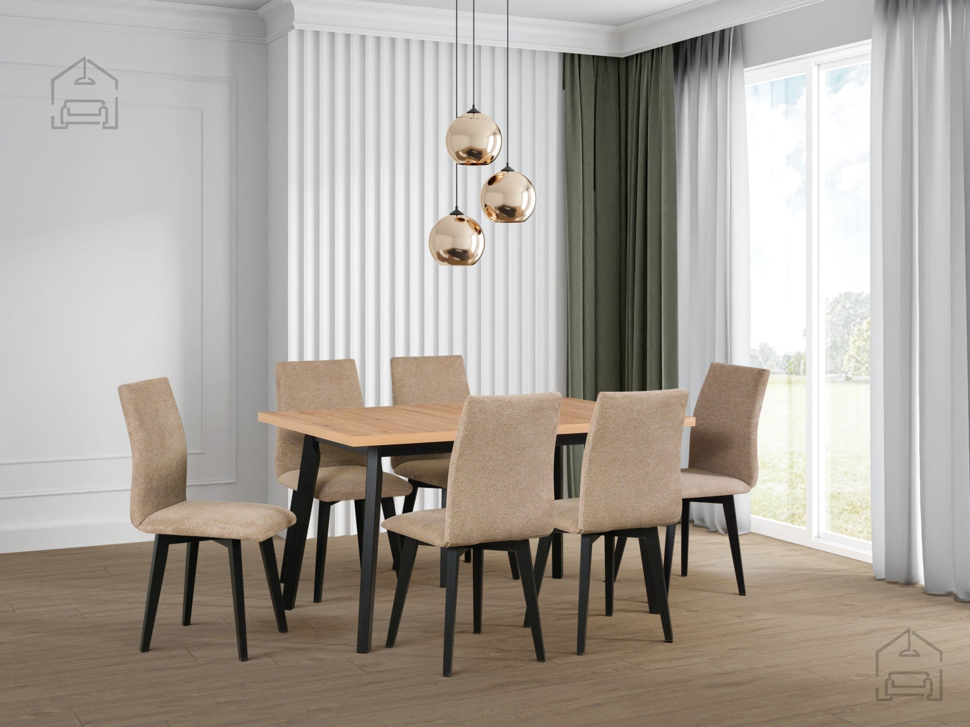 Die Farbkombination schwarz/artisan ermöglicht eine einfache Abstimmung mit verschiedenen Möbelstilen. In modernen Umgebungen harmoniert die schwarze Farbe gut mit Stahl- oder Glaselementen, während die warmen Artisan-Töne ein angenehmes natürliches Gleichgewicht schaffen. In klassischen Innenräumen bringt der Tisch Frische und einen subtilen Kontrast. Er kann mit Essstühlen aus Massivholz, gepolsterten Sitzen oder minimalistischen Metallkonstruktionen kombiniert werden – in allen Fällen behält er seine raffinierte Präsenz.