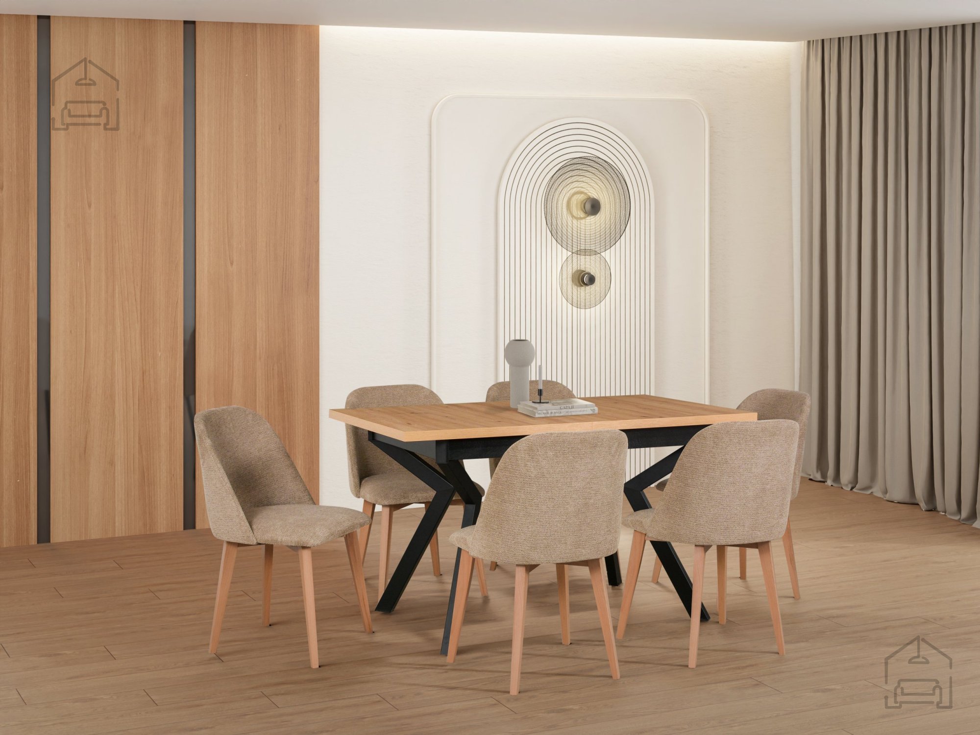 Der Tisch Ikon 4 ist das Ergebnis präziser Verarbeitung und durchdachter Materialauswahl. Das massive Buchenholz des Rahmens sorgt für außergewöhnliche Stabilität, während die laminierte Oberfläche eine einfache Reinigung sowie Kratz- und Fleckenbeständigkeit ermöglicht. Die Oberfläche in der Farbkombination schwarz/artisan drückt moderne Eleganz aus, die durch das metallene schwarze Gestell ergänzt wird, wodurch ein Kontrast zwischen der Wärme des Holzes und dem industriellen Charakter des Metalls entsteht. Eine solche Kombination verleiht dem Tisch ein raffiniertes, aber zugleich robustes Aussehen, das gut zu verschiedenen Einrichtungsstilen passt – vom minimalistischen skandinavischen bis zum urbanen Industriedesign.