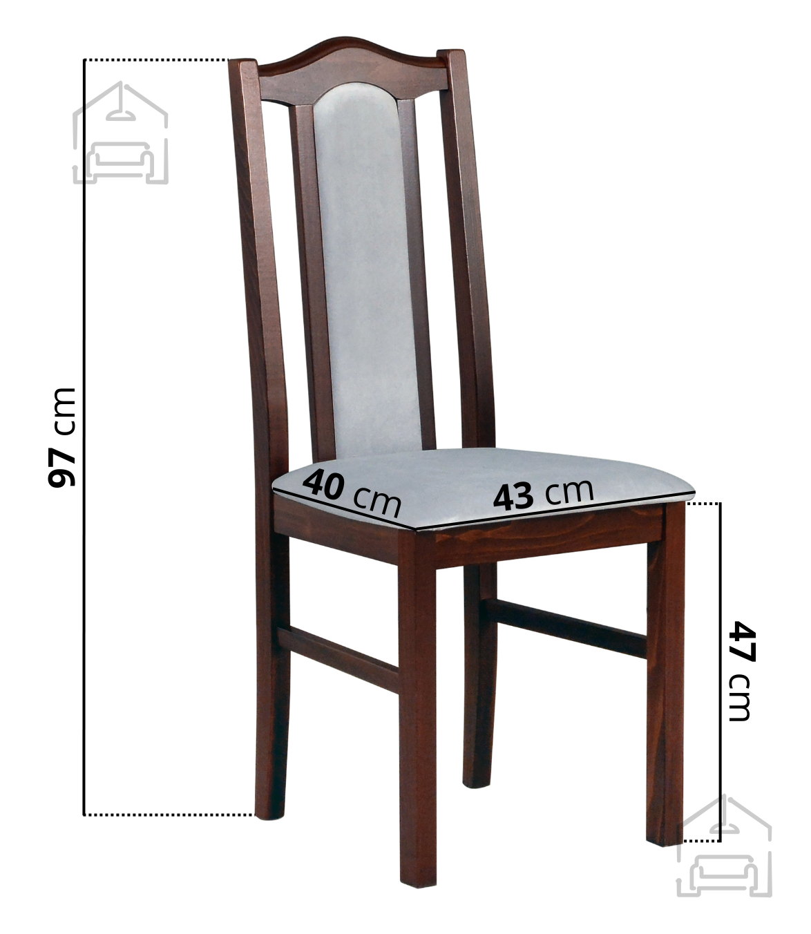 Das Modell Bos 2 ist in mehreren Farbtönen erhältlich: Nuss, Weiß, Sonoma, Kastanie, Wenge und heller Nuss. Diese breite Palette an Nuancen ermöglicht es, den Stuhl harmonisch mit verschiedenen Tisch- und Bodenarten zu kombinieren – von klassischem Parkett bis zu modernen Keramikfliesen. Hellere Farbtöne schaffen einen luftigen, skandinavischen Look, während dunklere Holztöne die elegante und traditionelle Wärme des Raumes betonen.
