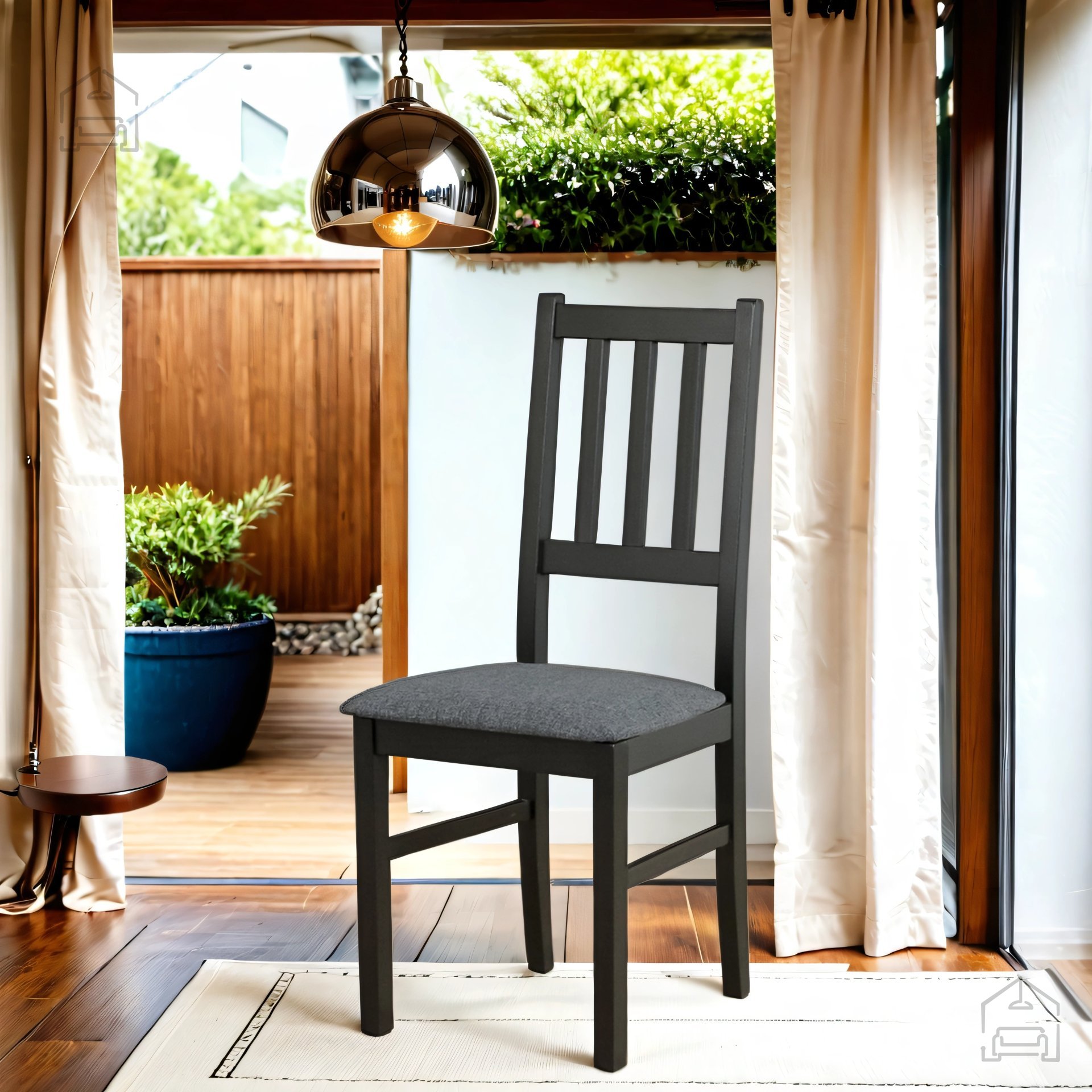 Der Stuhl Bos 4 bringt eine klassische Form mit einer leicht abgerundeten Rückenlehne, die stabile und bequeme Unterstützung für den Rücken bietet. Seine schlichte, aber raffinierte Linie ermöglicht die Integration in verschiedene Einrichtungsstile – von rustikal-ländlich bis zu modern-minimalistisch. Die Oberfläche aus massivem Buchenholz betont die natürliche Textur und Maserung, was jedem Möbelstück einen Hauch von Einzigartigkeit verleiht. Er ist in zahlreichen Farbtönen erhältlich, wie Nuss, Weiß, Sonoma, Erle, Graphit, Grandson, Buche, Schwarz, Wenge und heller Nussbaum, sodass Sie den Stuhl leicht mit dem vorhandenen Esstisch oder anderen Holzelementen im Raum abstimmen können.