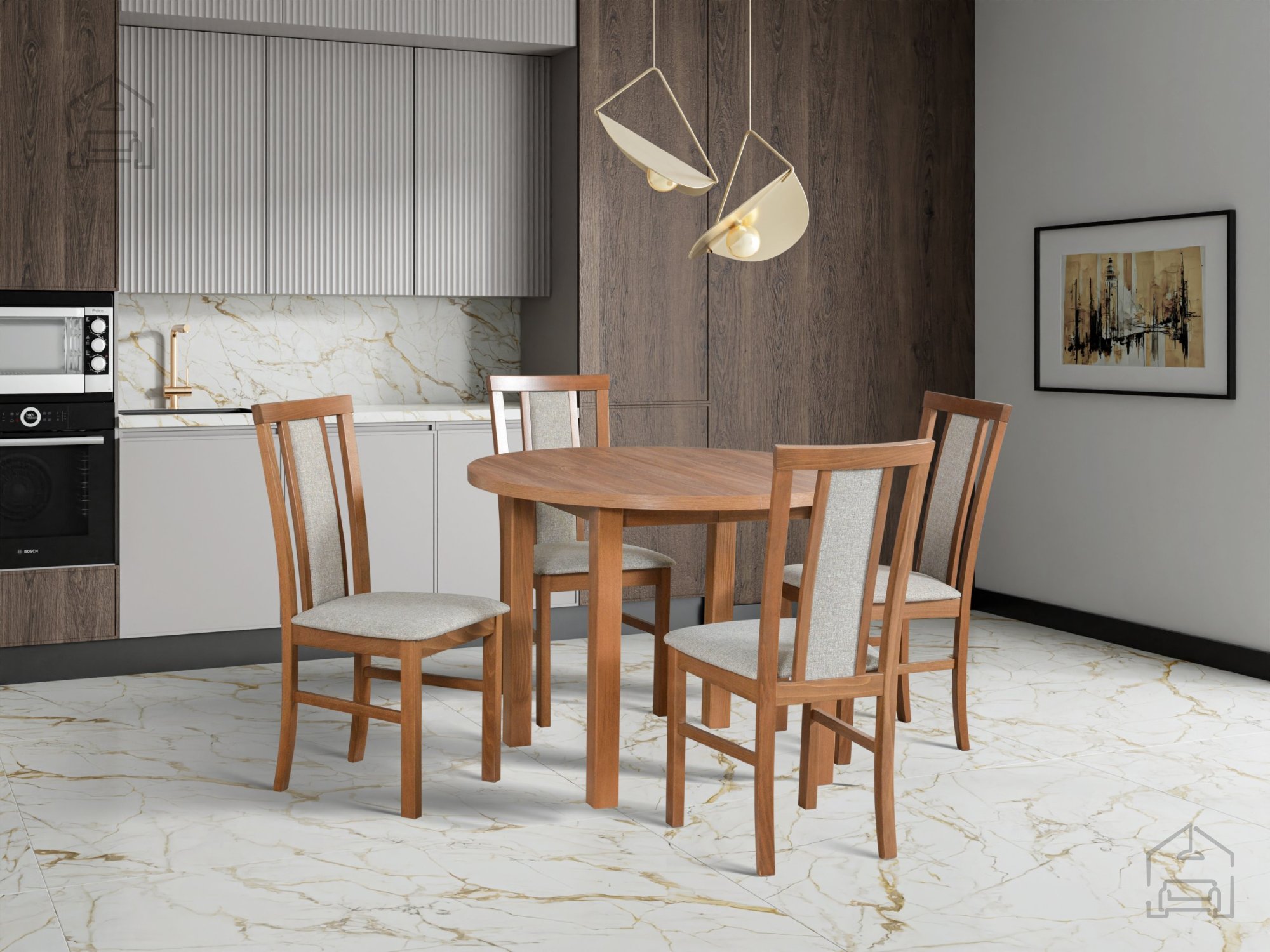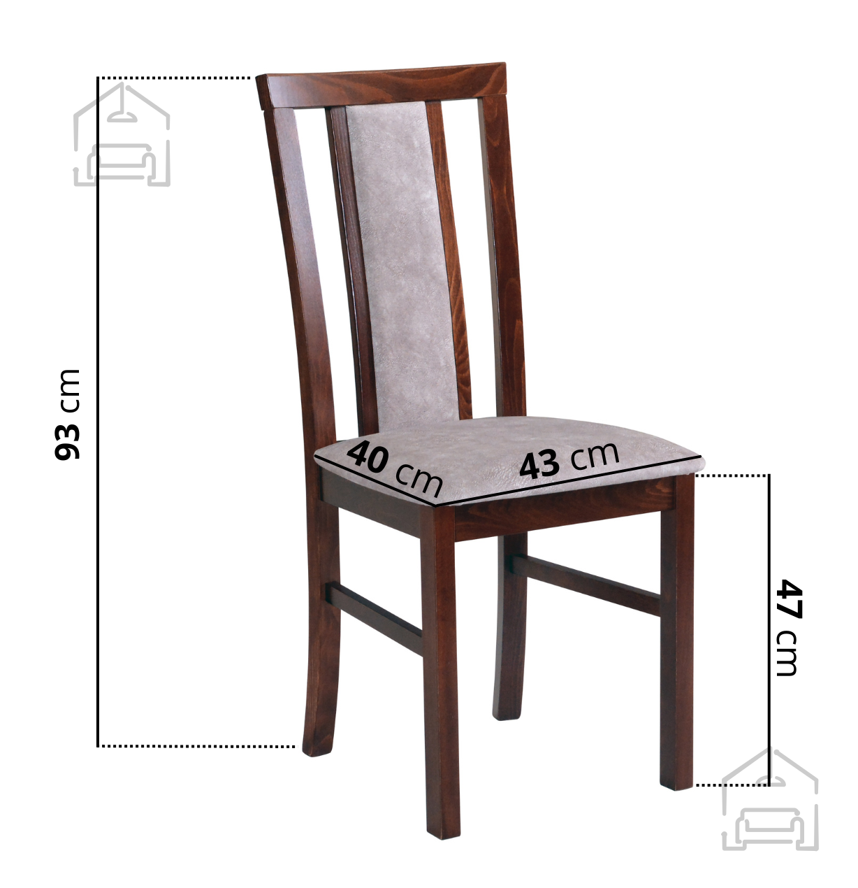 Der Esszimmerstuhl Wien 7 lässt sich leicht in verschiedene Umgebungen integrieren – von traditionellen Esszimmern bis zu modernen minimalistischen Räumen. Aufgrund seines universellen Designs eignet er sich sowohl für den häuslichen Gebrauch als auch für Gastronomiebetriebe, Restaurants oder Hotelrestaurants. Die Kombination aus massivem Holz und Stoff schafft ein Gleichgewicht zwischen Festigkeit und Weichheit, wodurch der Stuhl nicht kühl wirkt, sondern angenehm einladend. Der Holzrahmen sorgt für gute Stabilität, während die Polsterung Komfort im täglichen Gebrauch bietet.