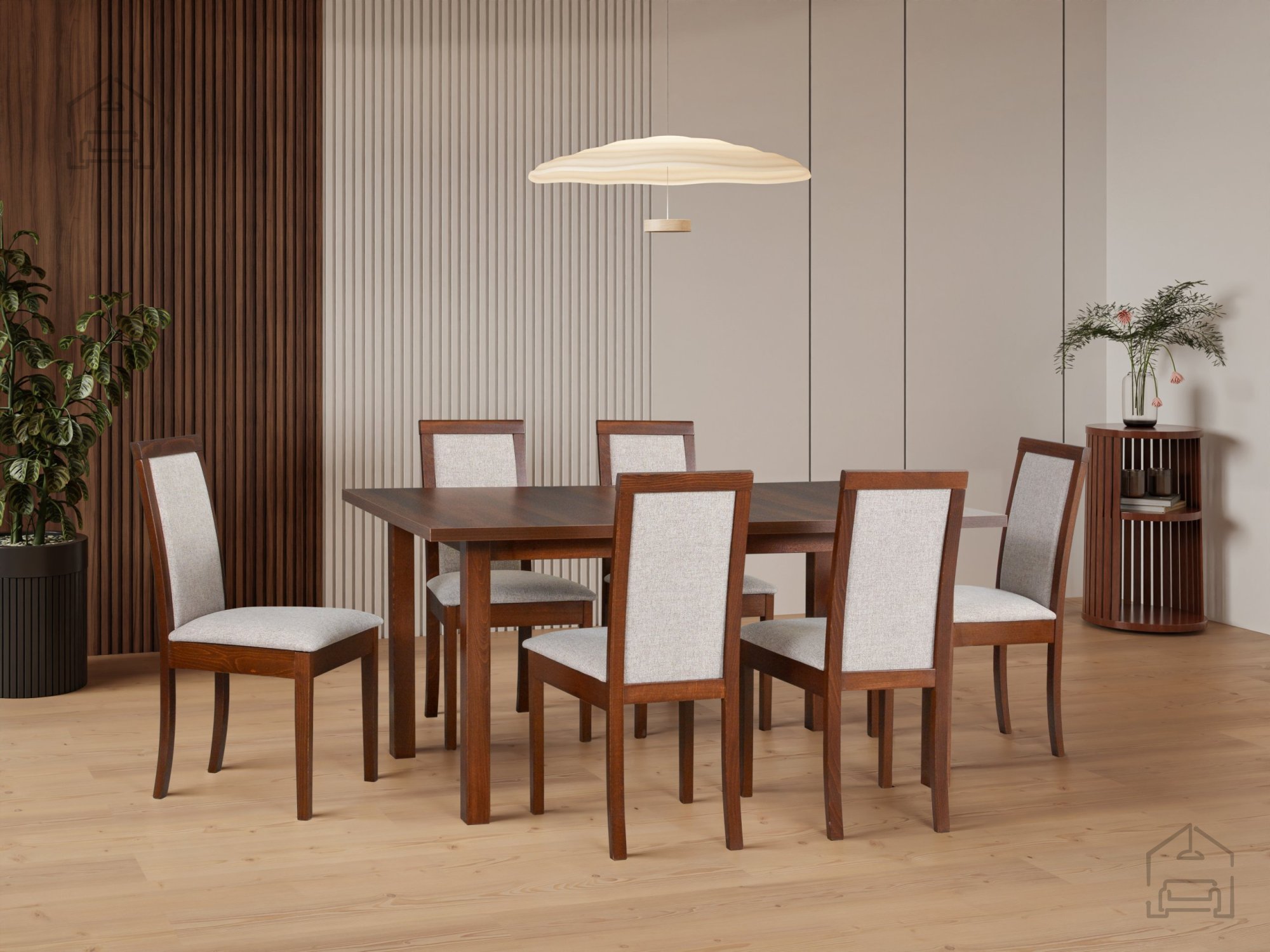 Der Esszimmerstuhl Roma 4 des renommierten polnischen Herstellers Drewmix ist ein hervorragendes Beispiel für die gelungene Verbindung von natürlichen Materialien, zeitloser Eleganz und funktionalem Komfort. Er ist aus massivem Buchenholz gefertigt, was ihm Stärke, Stabilität und eine lange Lebensdauer verleiht. Der Sitz ist mit einem hochwertigen Stoff bezogen, der angenehm im Griff und pflegeleicht ist, sodass der Stuhl sowohl für den täglichen Gebrauch als auch für besondere Anlässe geeignet ist. Seine Abmessungen – Breite 47 cm, Tiefe 41 cm und Höhe 93 cm – gewährleisten ergonomisches Sitzen und optimale Rückenunterstützung, was wesentlich zum Komfort während der Mahlzeiten oder längeren Zusammenkünften am Esstisch beiträgt.